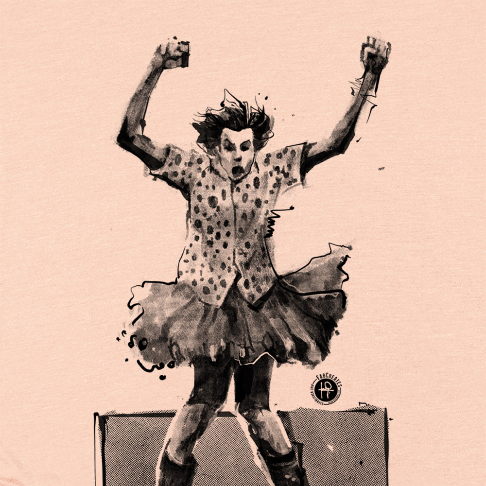Dive into the zany world of the best pet detective with our "Ace Ventura Dancing: Retro Hilarity design". This piece captures Fab's hilarious take on the iconic movie, utilizing stamp-like halftone patterns and loose ink style to create dynamic shading and a cohesive design flow.