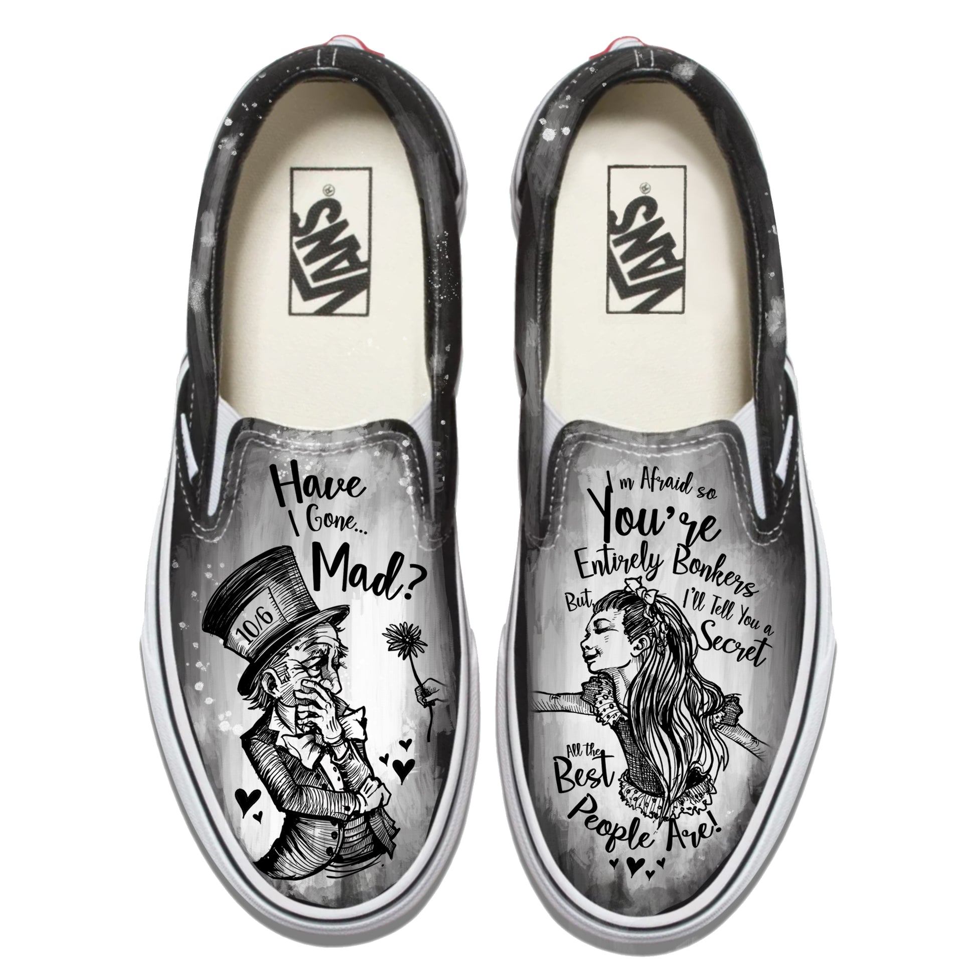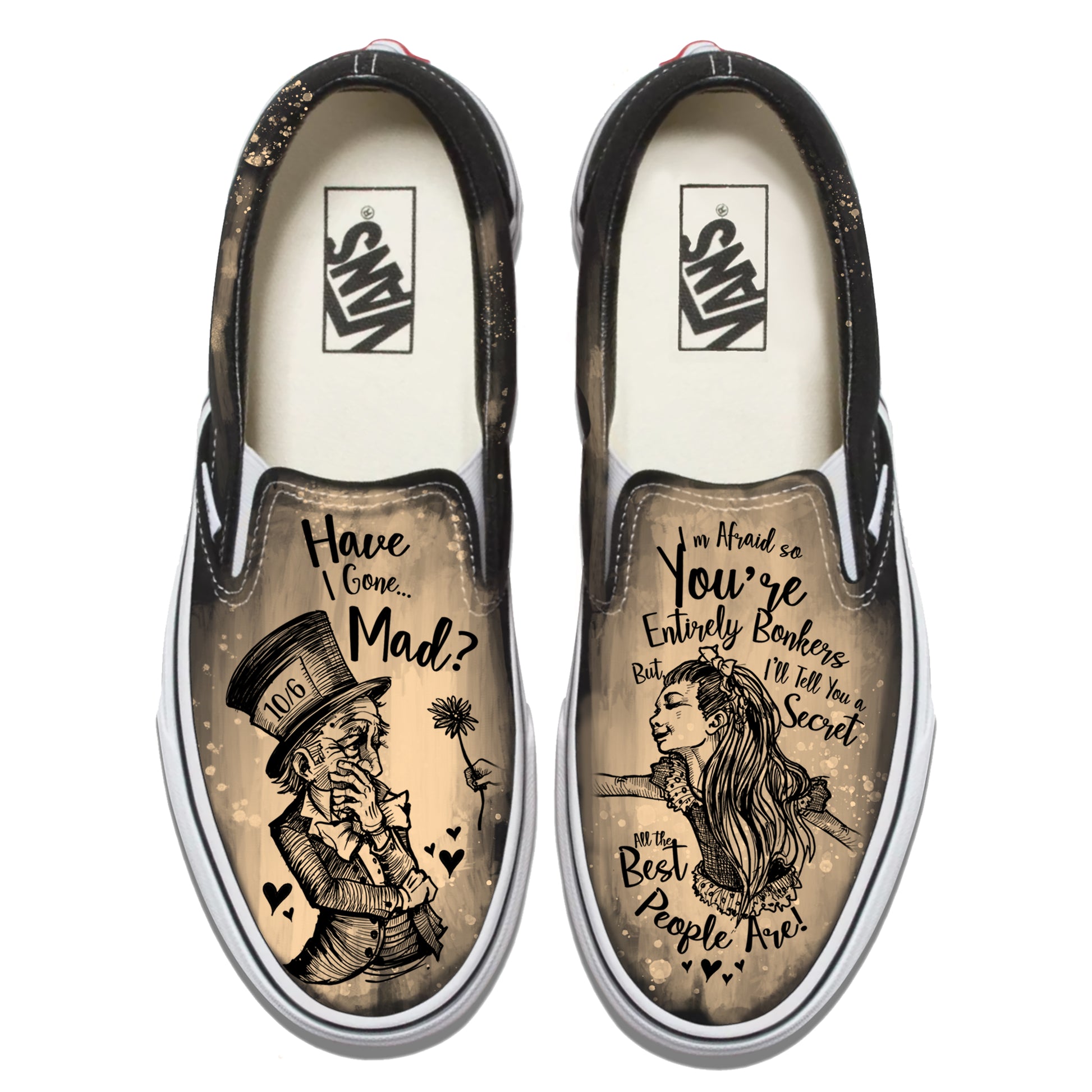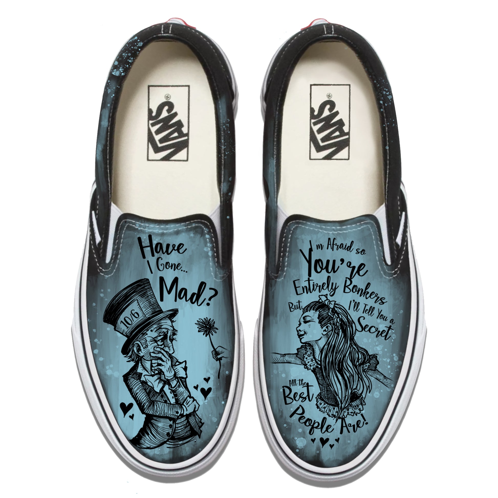 Alice in Wonderland-Have I gone Mad? Vans Slip ons