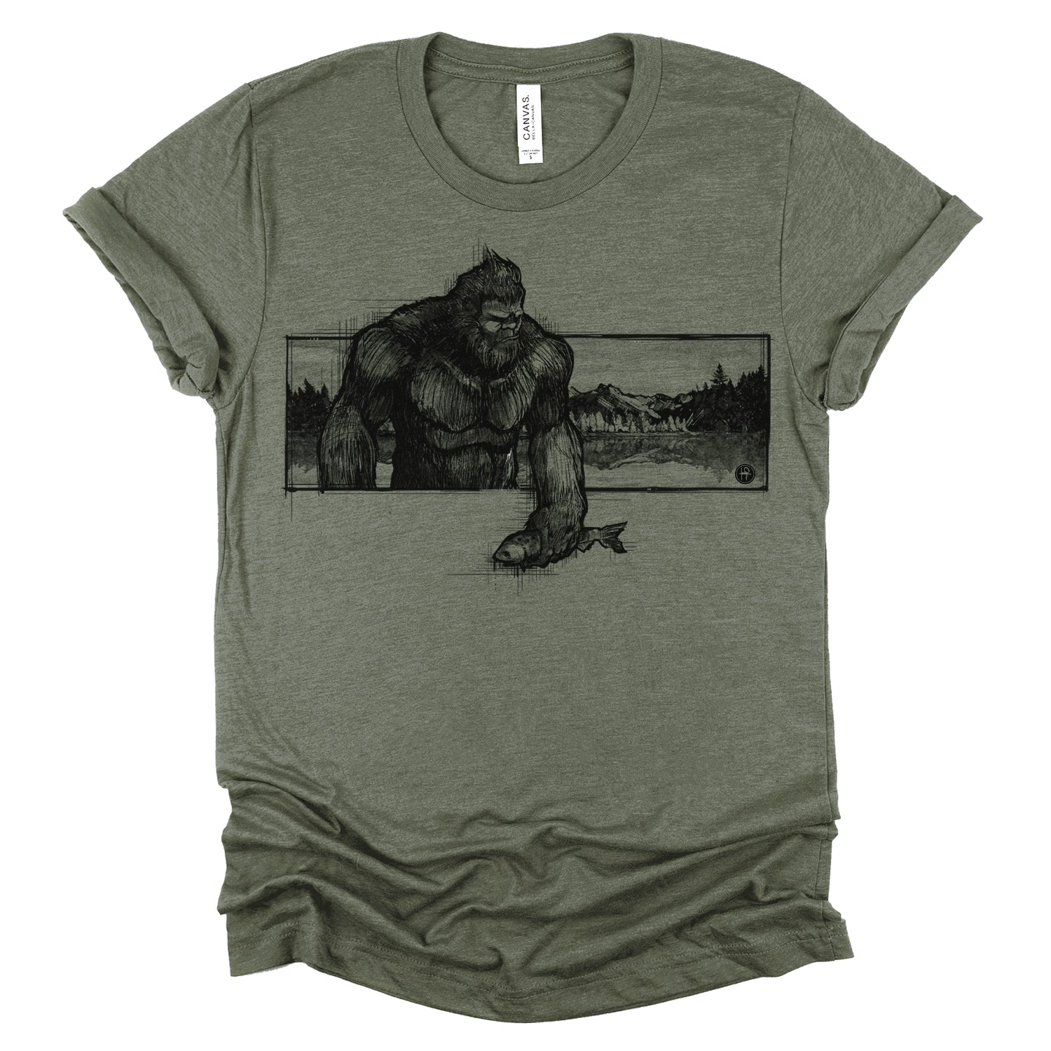 Bigfoot with Fish: Wyoming Wilderness T-Shirt
