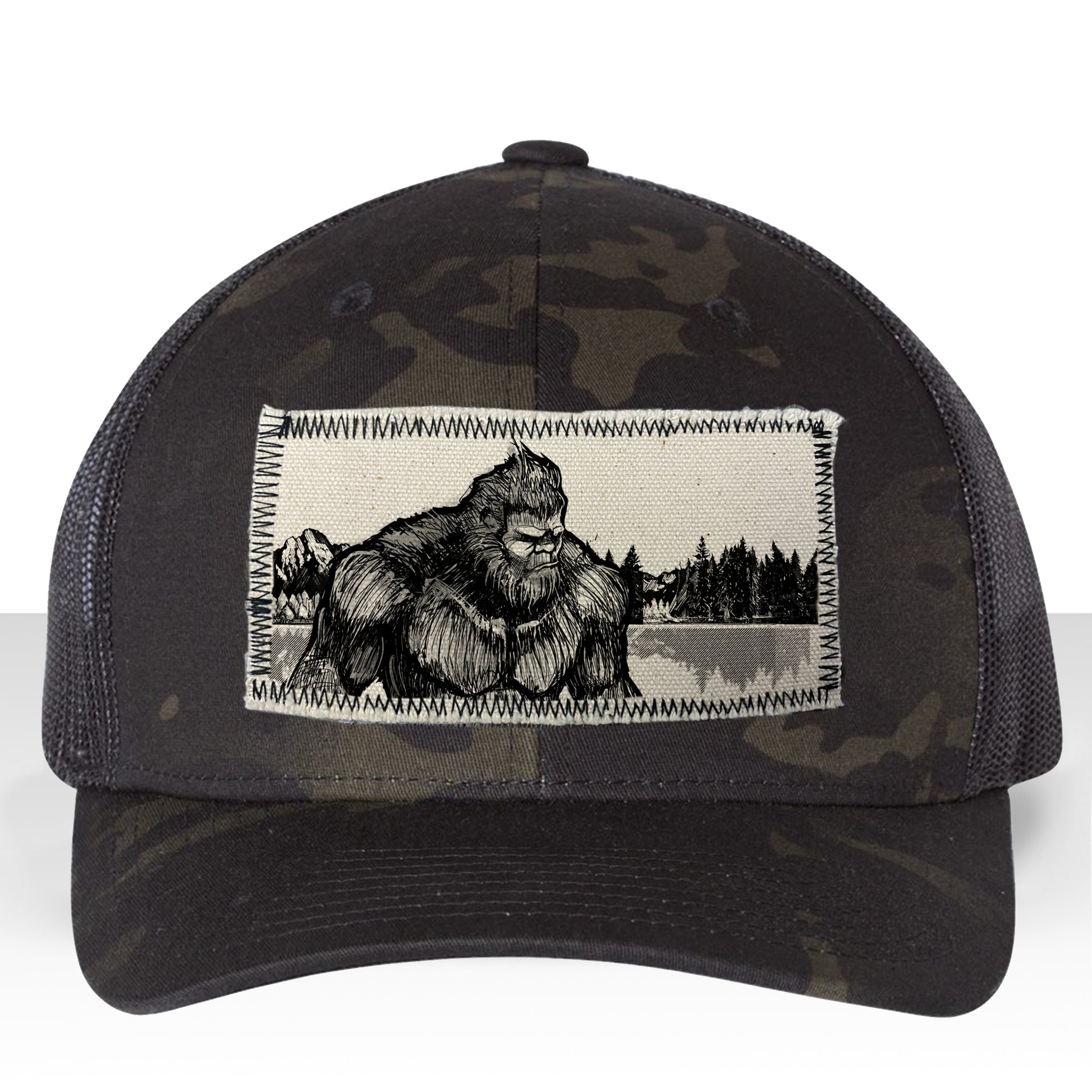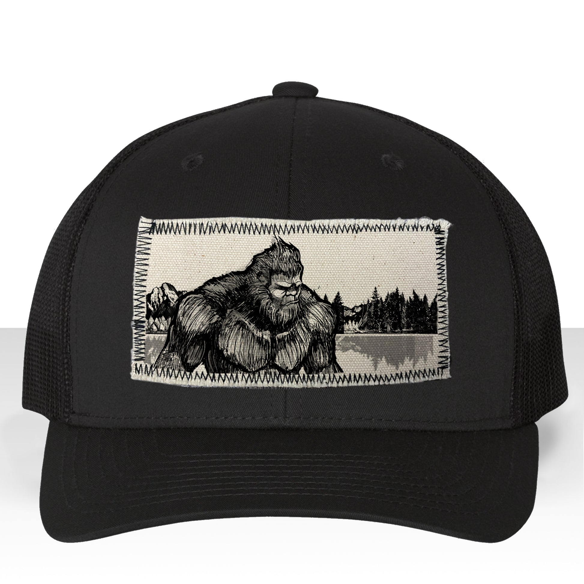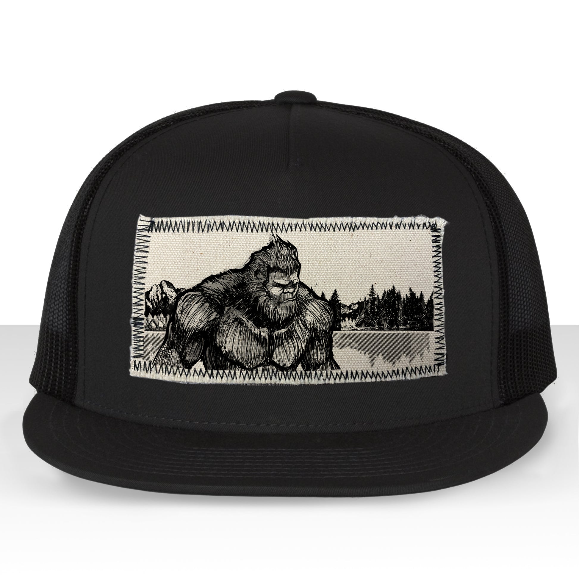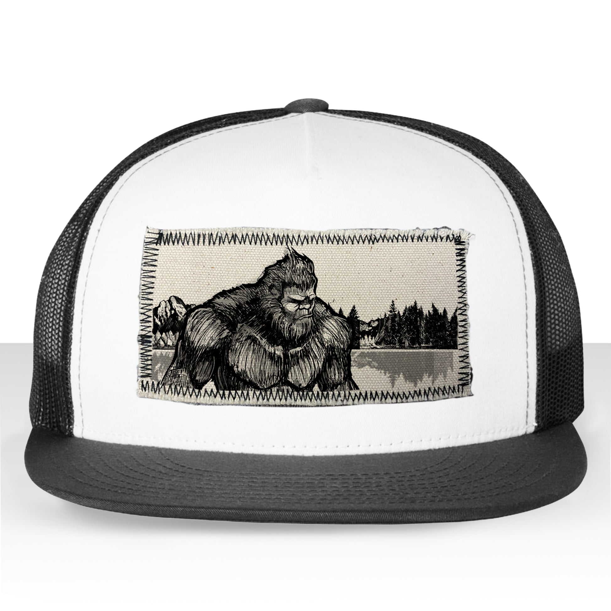Bigfoot Fish Trucker Hat Line Art