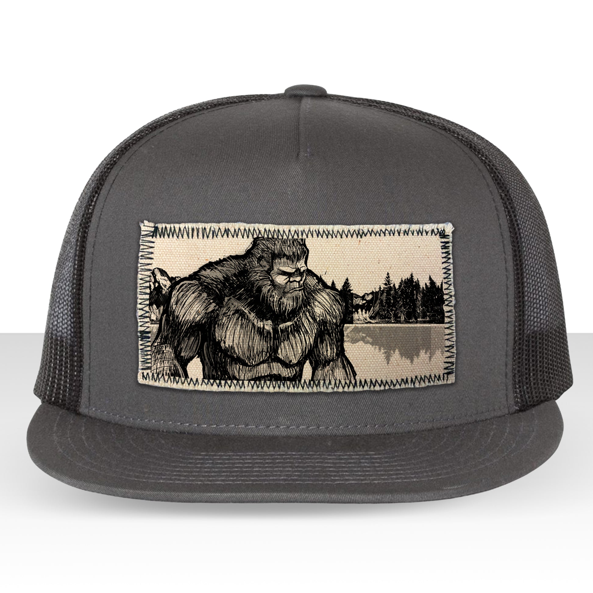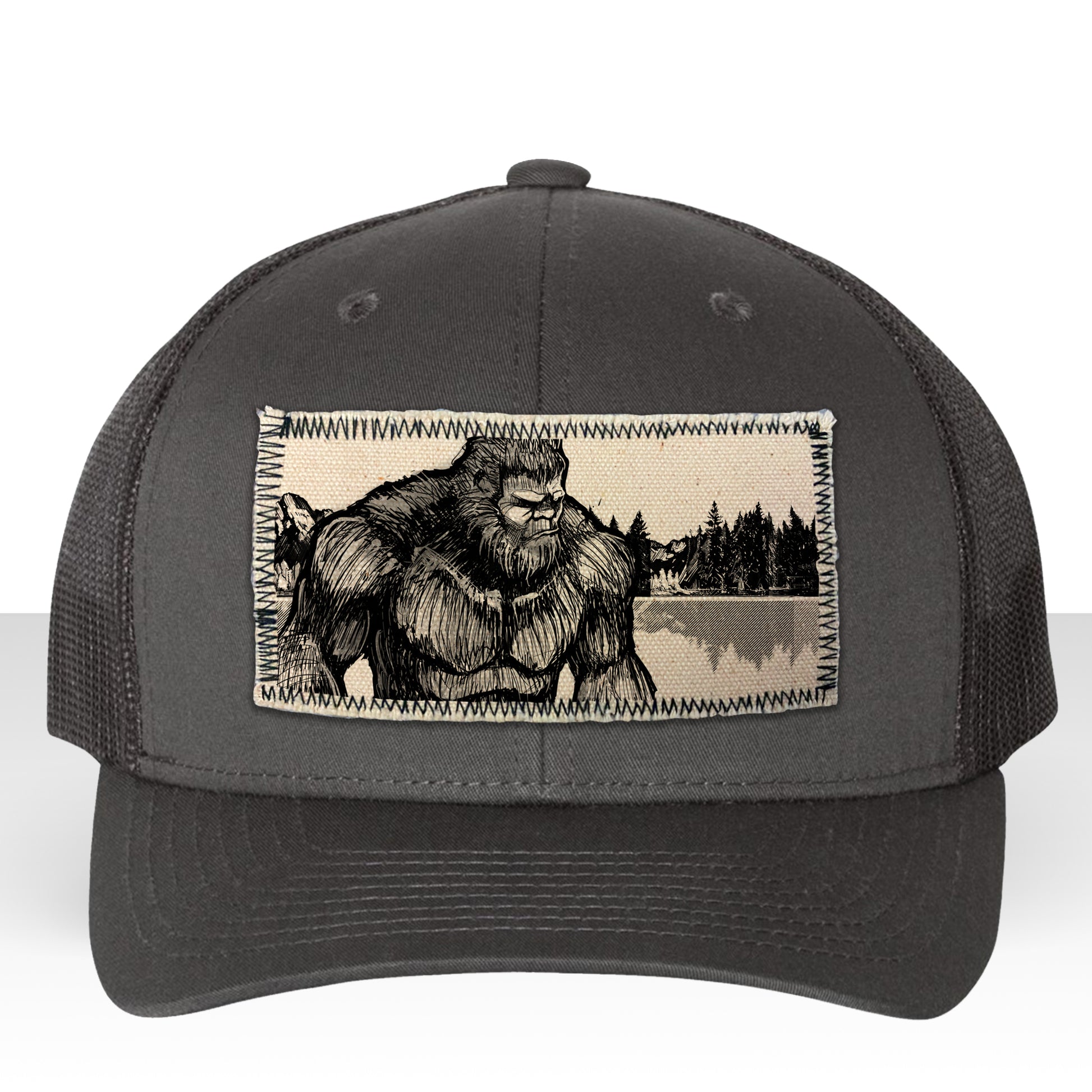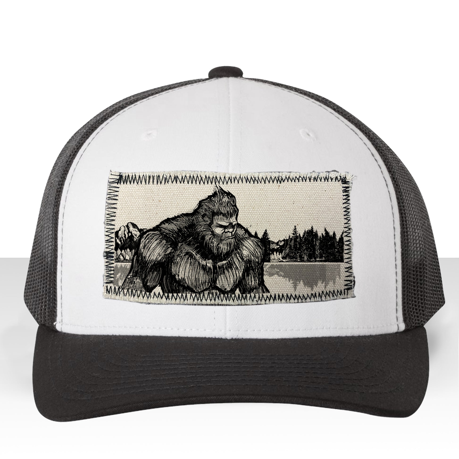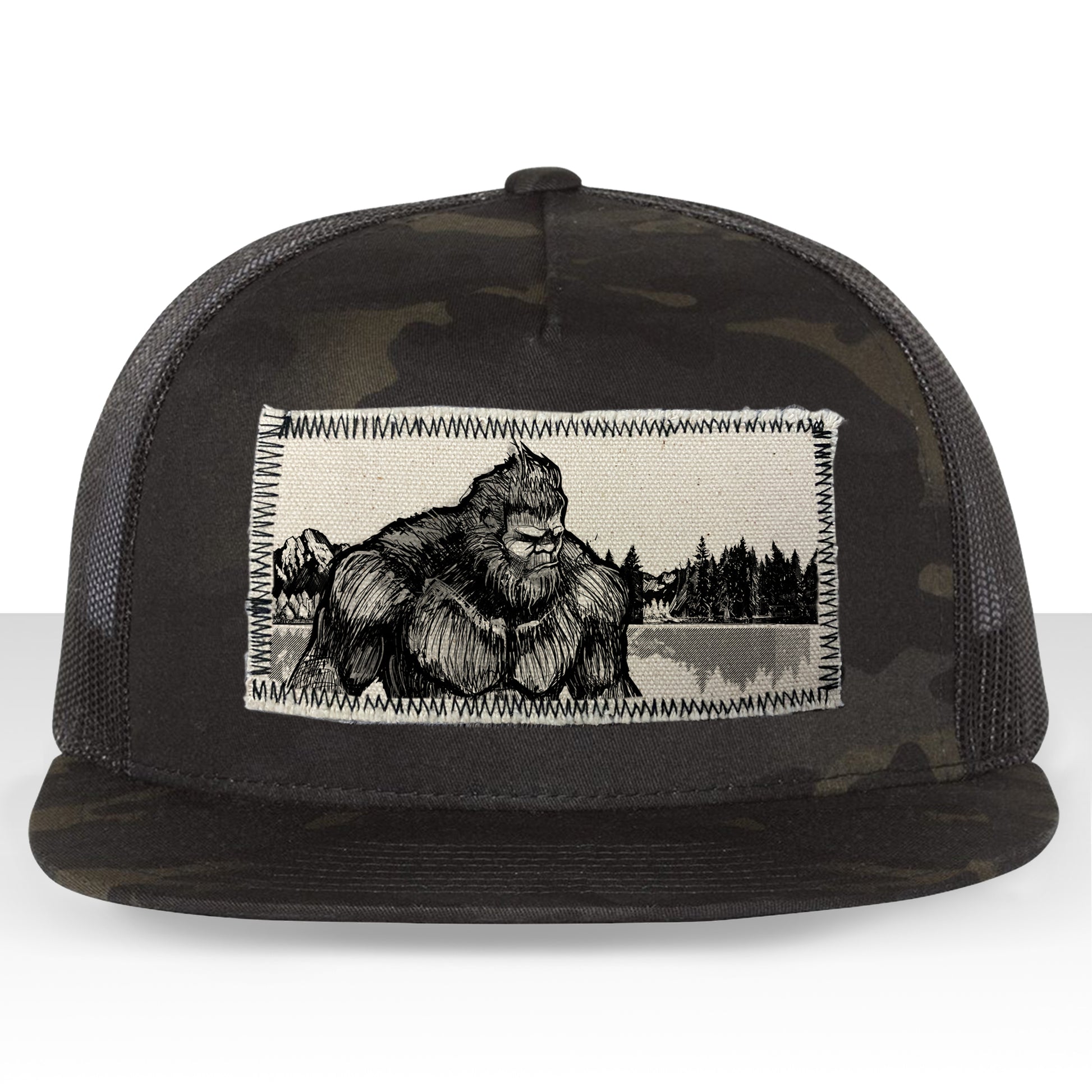 Bigfoot Fish Trucker Hat Line Art