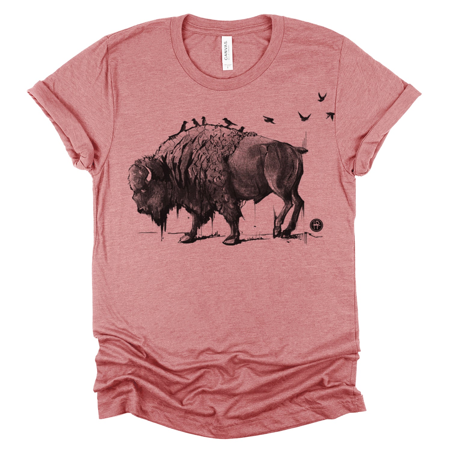 Behold the grand Bison in our "Bison: Majestic Harmony" design. Adorned with avian companions on its back, symbolizing the harmony of nature, this piece utilizes stamp-like halftones to create value. It exudes allures of vintage illustrations with heavy influences from Fab's artistry.