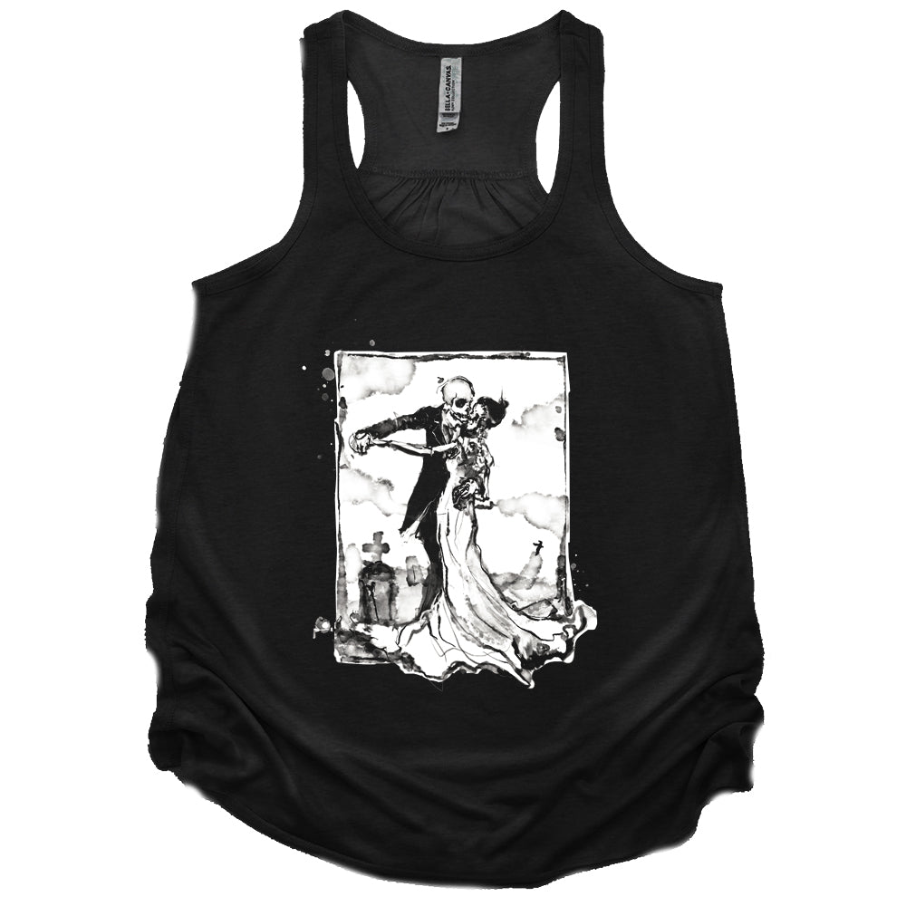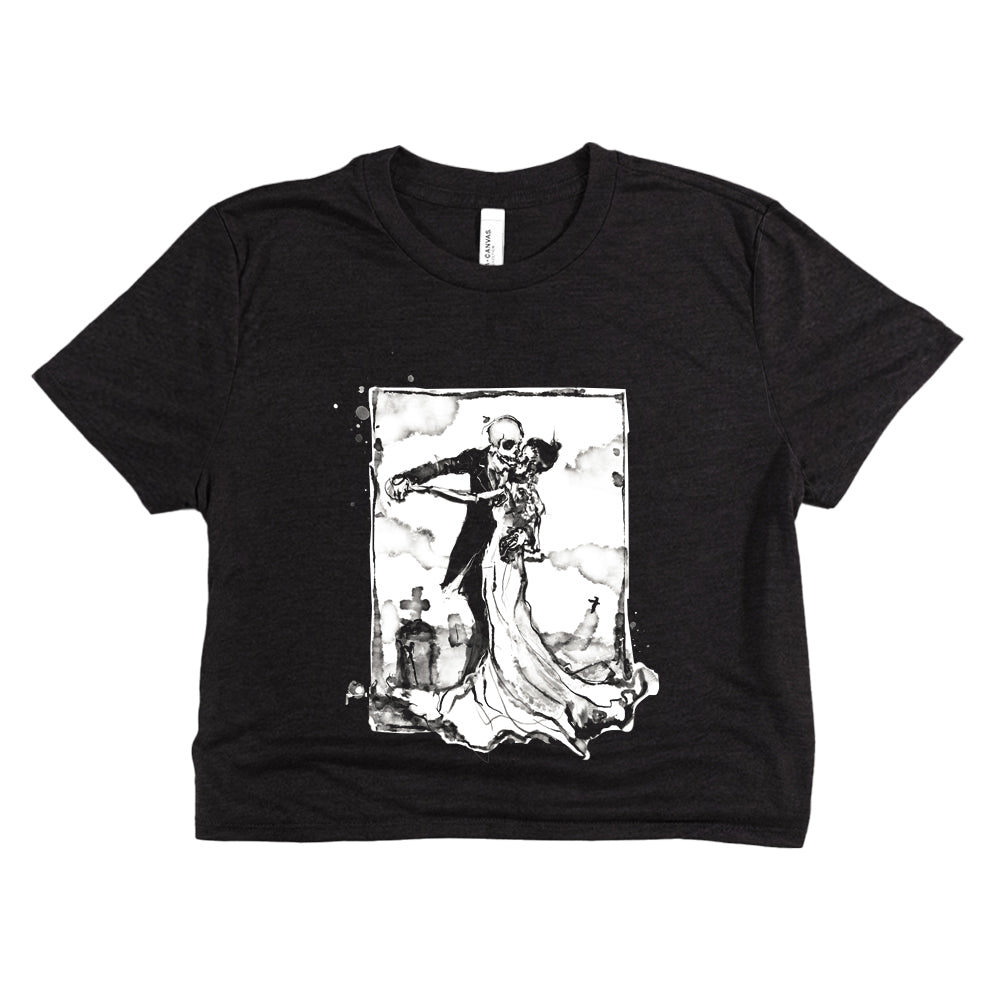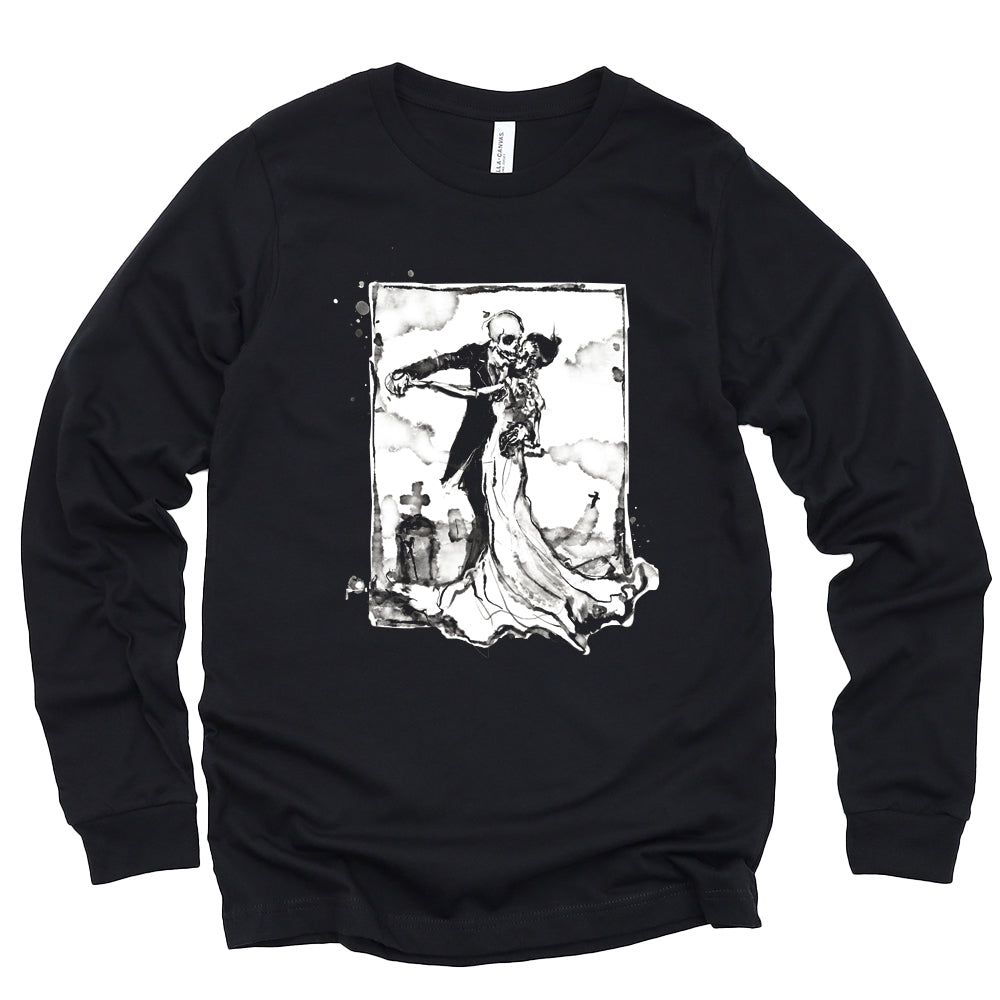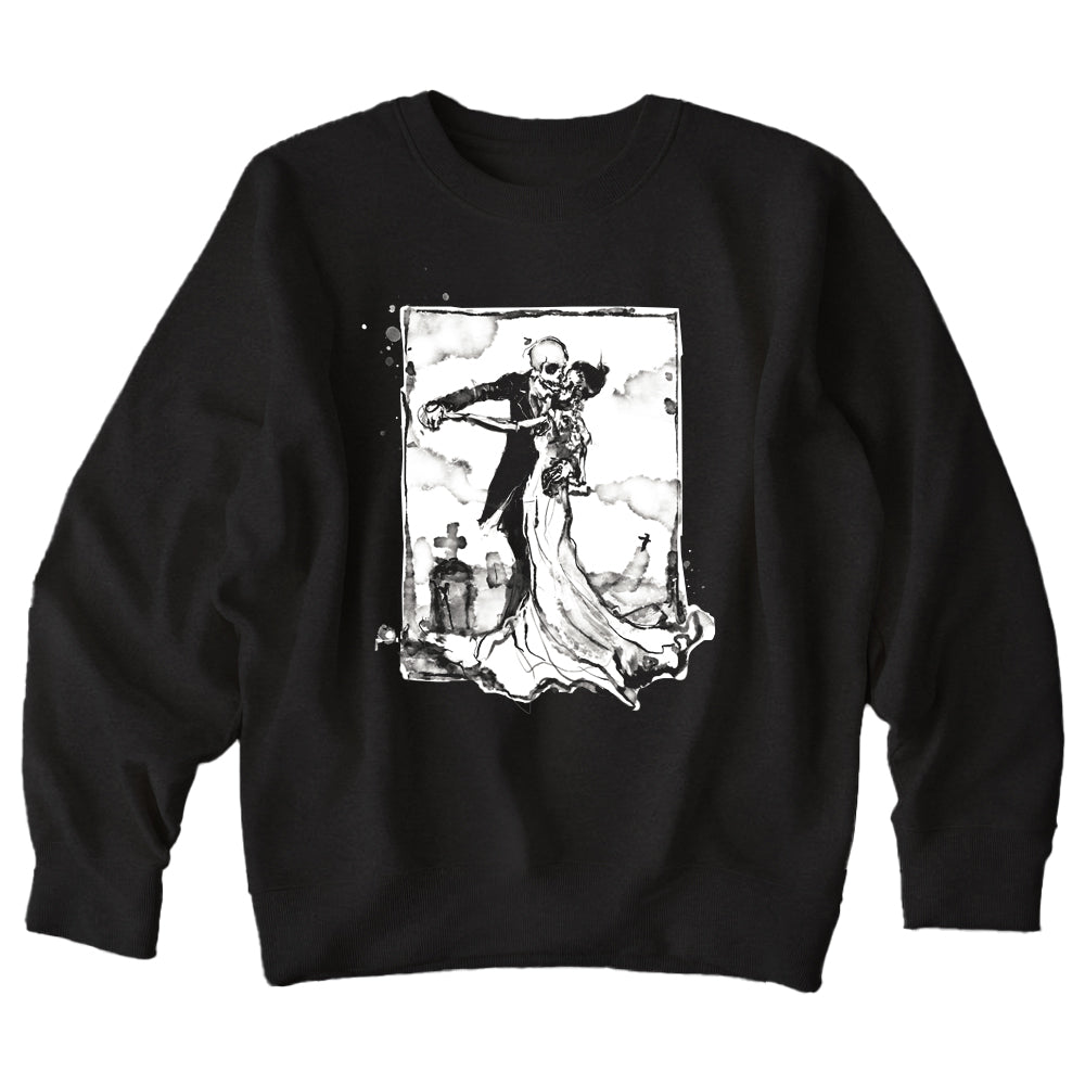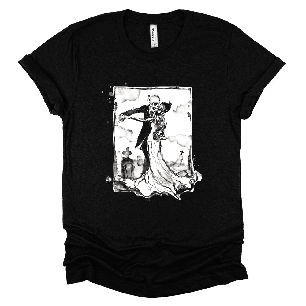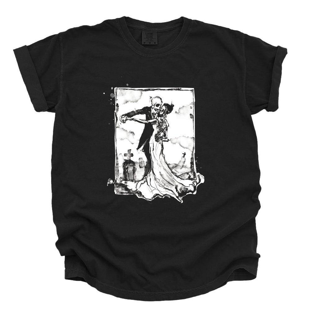 Cemetery Waltz captures romance after the end — bone and silk moving together beneath a quiet sky. It’s love that outlasts flesh, elegance tangled with decay. Haunting, intimate, and strangely tender… proof that even in the grave, some things still know how to move together.