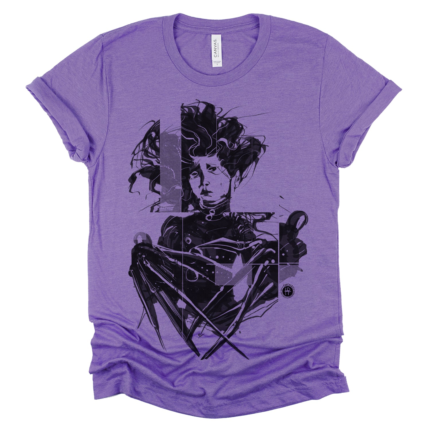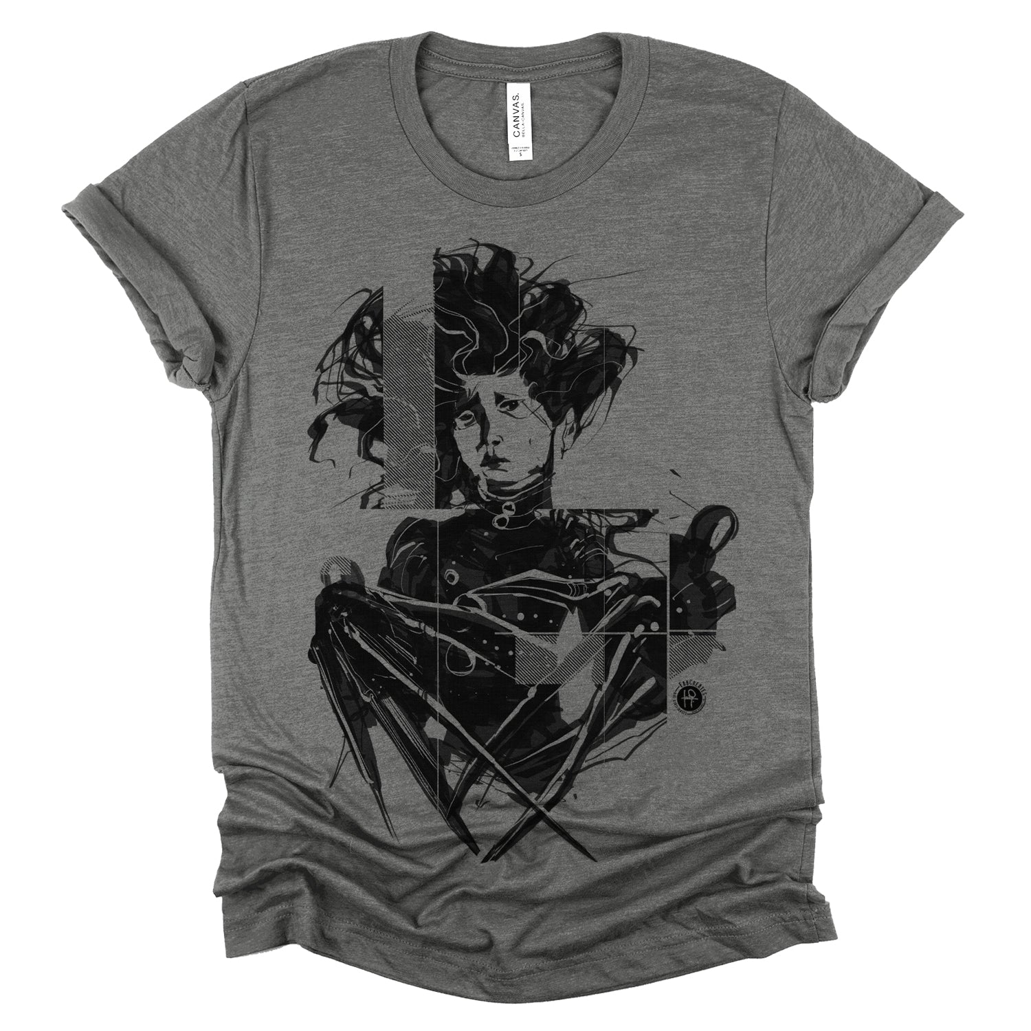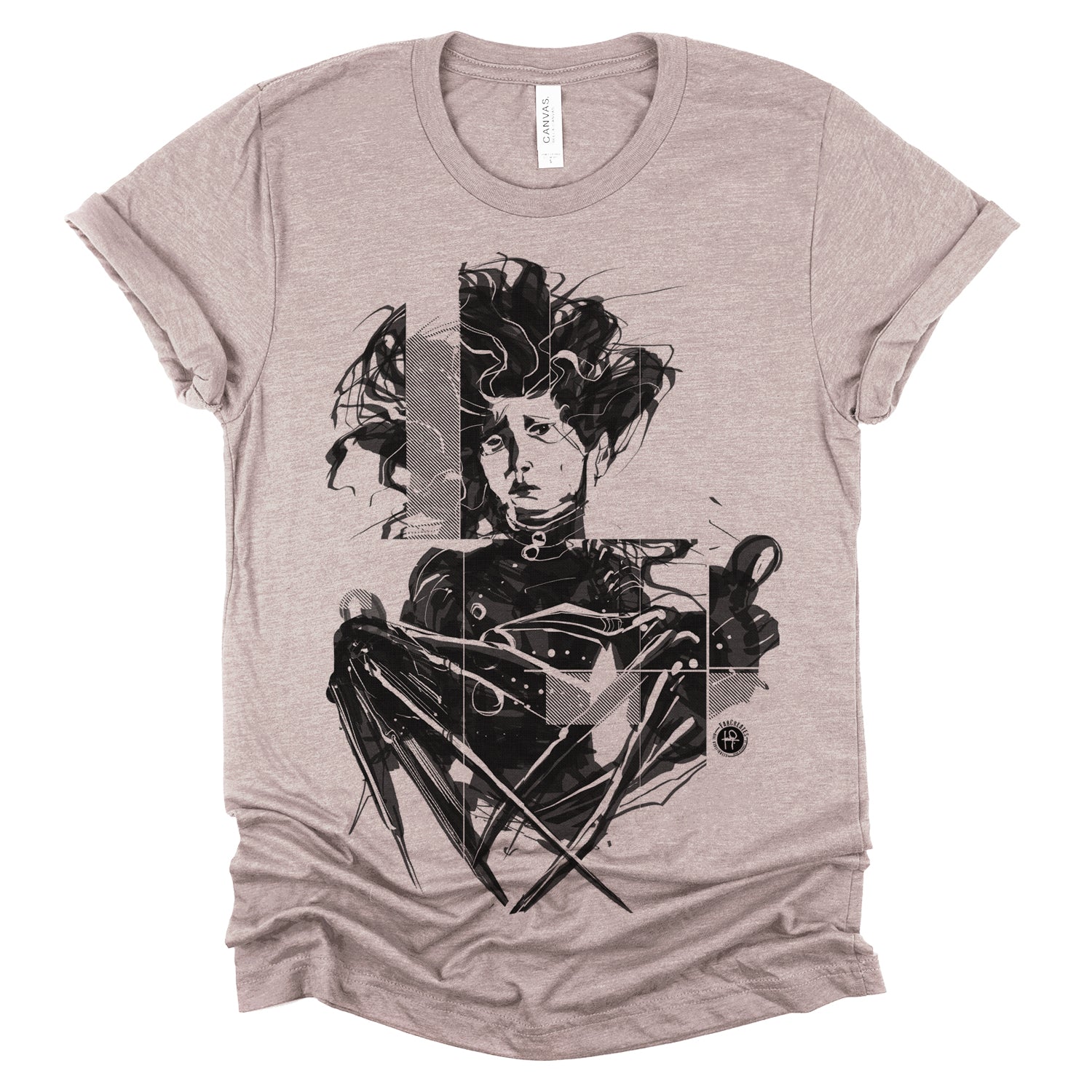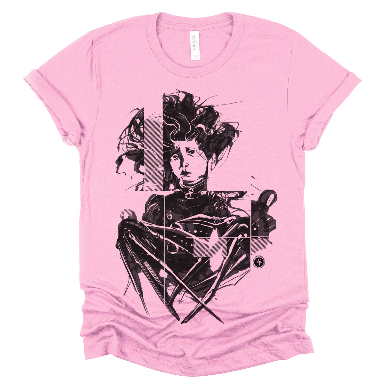 Celebrate the whimsical world of Tim Burton with our "Crazy Scissors Hands" design, paying homage to the iconic character Edward. With FabCreates' unique style and humor, this piece brings a touch of quirky charm to your wardrobe. Fab has captured Edward's sadness using a wet ink brush style, separating the whole piece into thick diagonal lines for screen-printing.