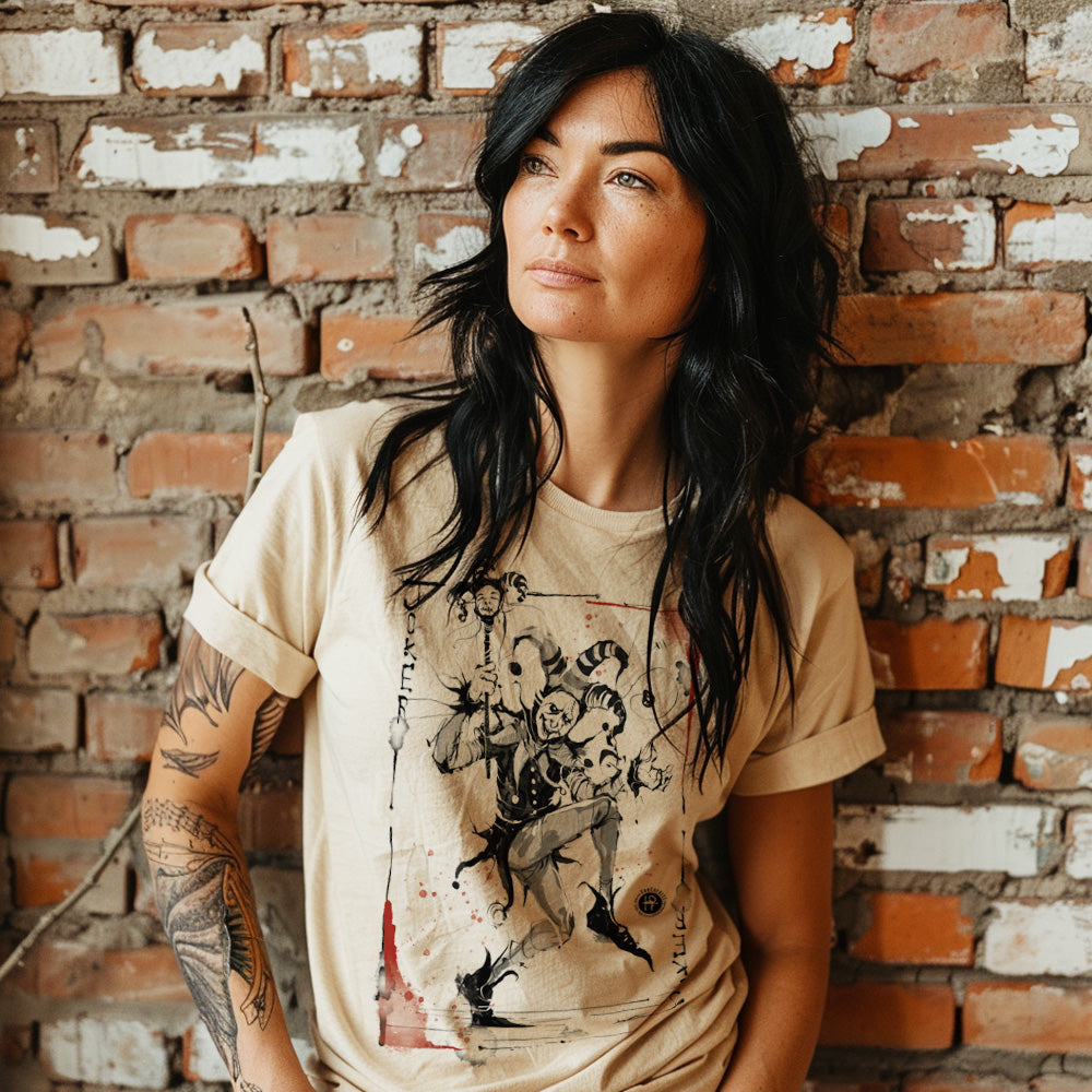 Always hand-screen printed with water-based inks on premium Unisex Heather Tees (52% cotton/48% poly), this shirt embodies FabCreates' commitment to bold artistic expression. Available in XS to 4XL, it ensures both comfort and style for every wearer.