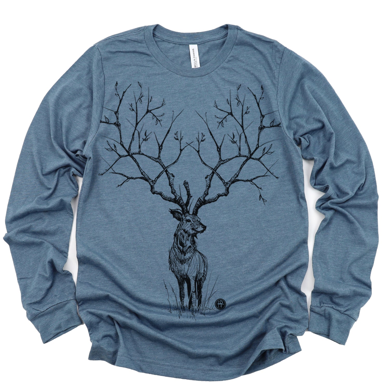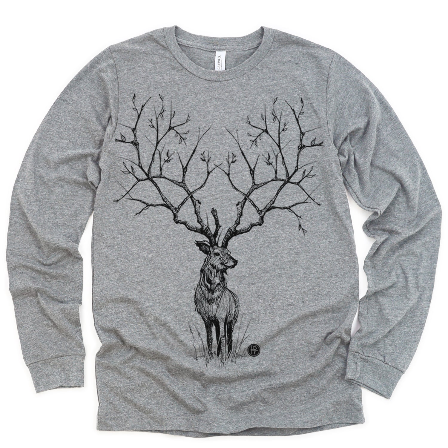 Embrace the enchanting beauty of nature with our Enchanted Deer Long Sleeve T-Shirt. Featuring a majestic deer with tree branch horns, this design evokes a sense of tranquility and wonder.