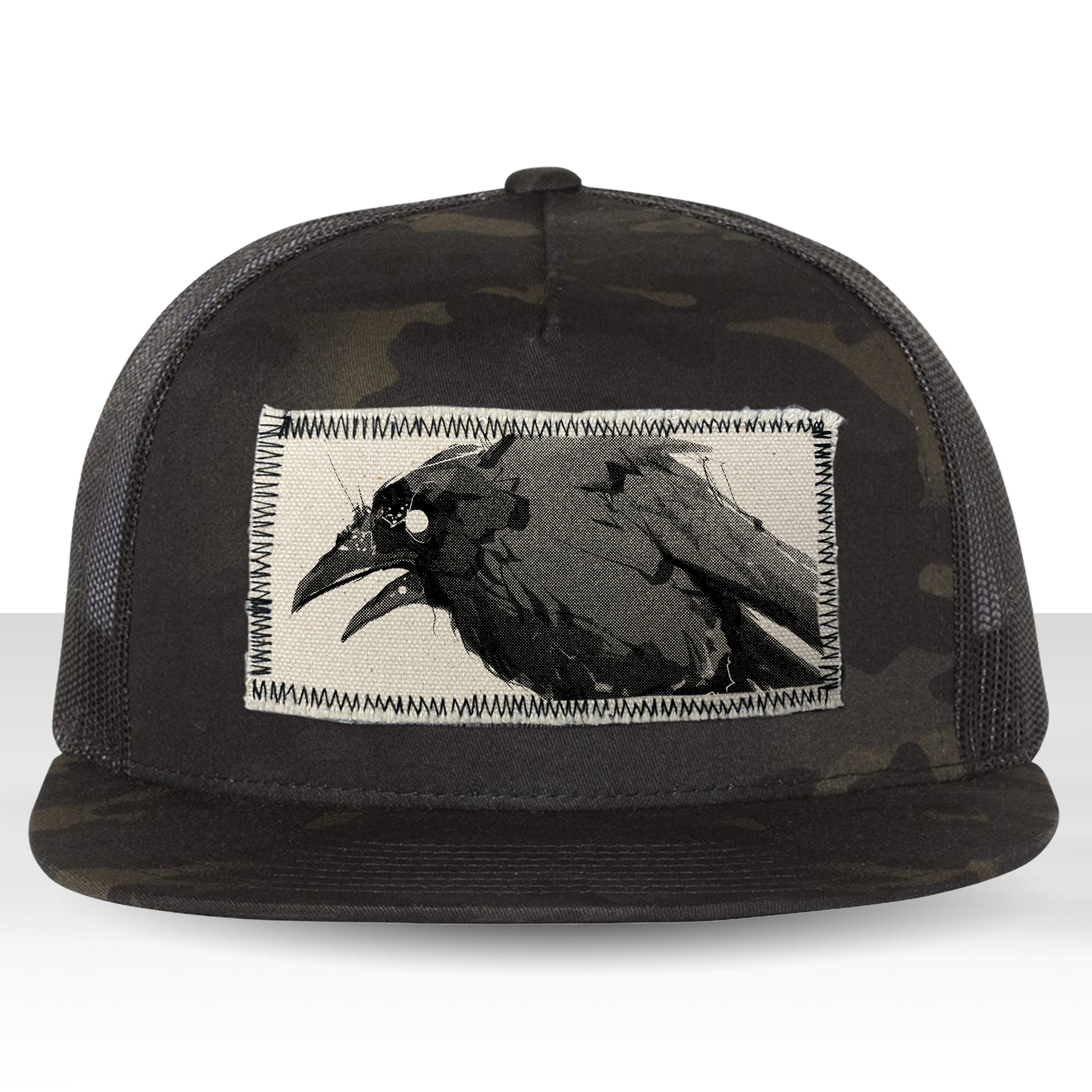 We meticulously hand-cut and stitch each patch before screen printing with water-based inks. For our hats, we use YP Classics - Five-Panel Classic Trucker for flat bills with a high profile, and YP Classics - Six-Panel Trucker Cap for curved bills with a mid profile. Both styles feature a 65/35 polyester/cotton blend, a mesh back, and a snapback closure. These trucker hats showcase FabCreates' signature gritty, imperfect style.