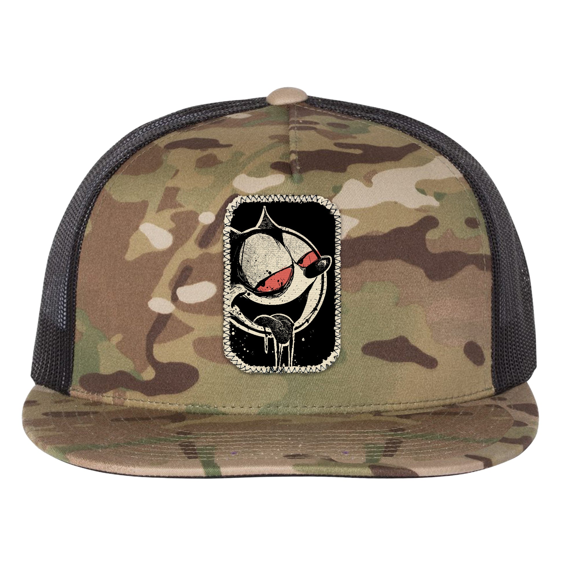 We meticulously hand-cut and stitch each patch before screen printing with water-based inks. For our hats, we use YP Classics - Five-Panel Classic Trucker for flat bills with a high profile, and YP Classics - Six-Panel Trucker Cap for curved bills with a mid profile. Both styles feature a 65/35 polyester/cotton blend, a mesh back, and a snapback closure. These trucker hats showcase FabCreates' signature gritty, imperfect style.