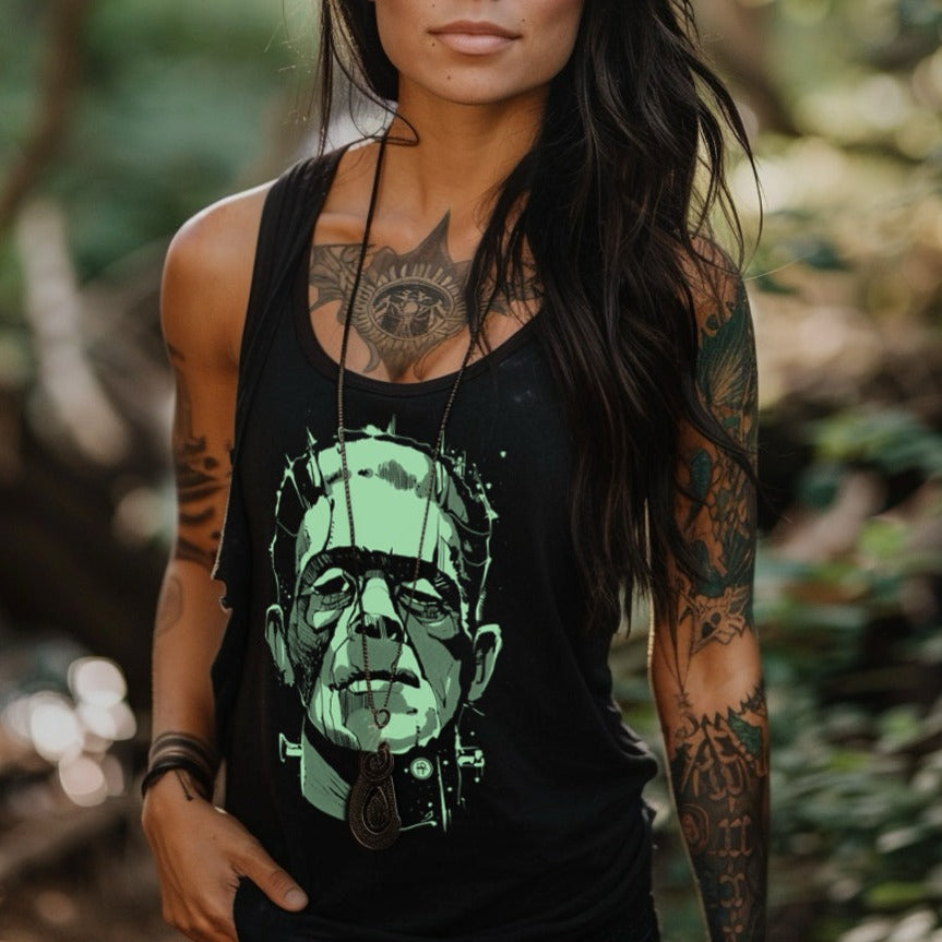 Step into the realm of classic Hollywood and literature with our "Frankenstein: A Classic Monster" design, reimagined in FabCreates' original style. Embodying our signature humor and gritty boldness, this shirt puts a unique spin on a beloved icon. Fab employs intricate line work to define the shapes, adding variety, while the halftone rounded shading lends a vintage print-like feel.