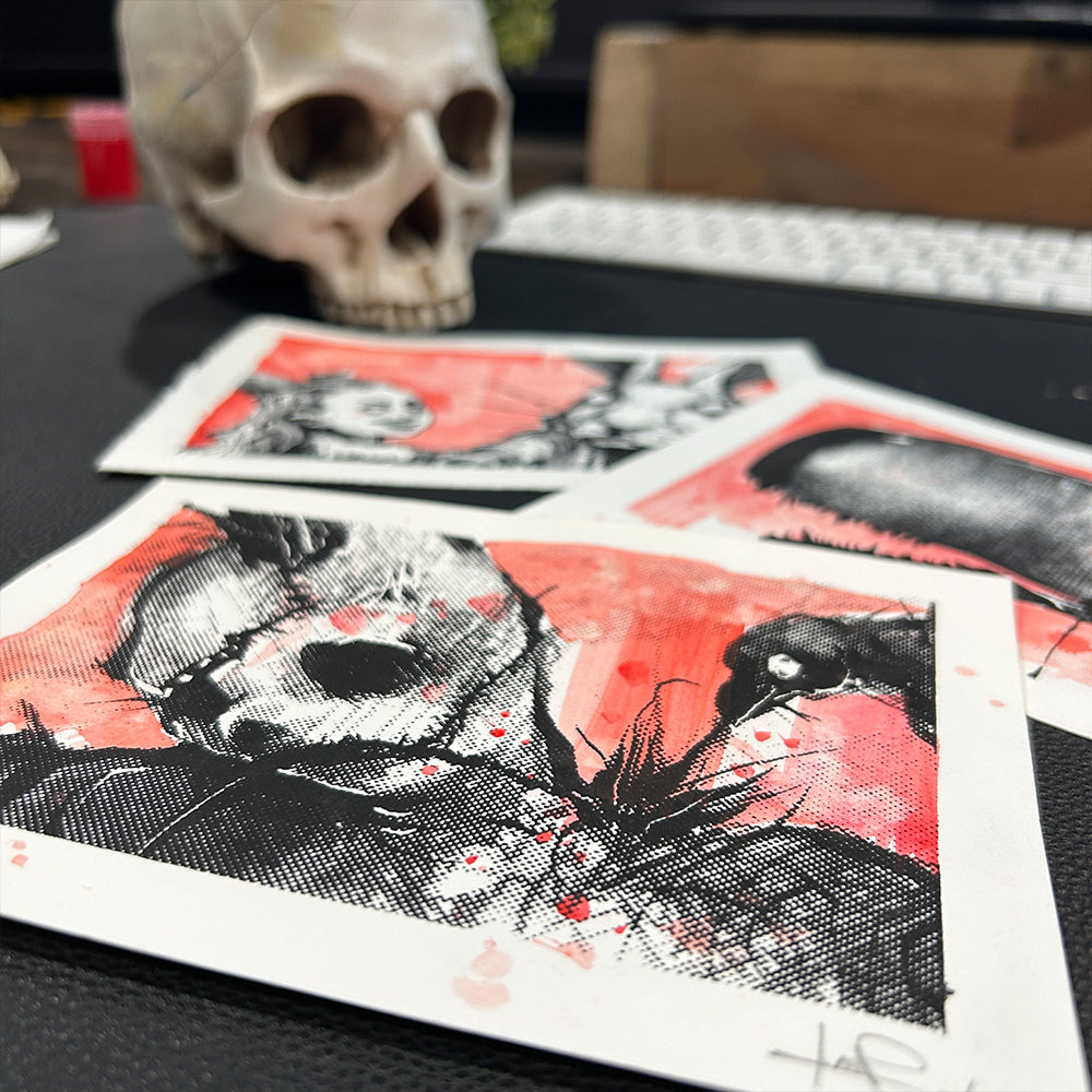 ✨ Hand-made. Signed and Numbered by Fabrizio. Unique & Premium quality. Yours to own. Featuring a bold splash of hand-applied red paint, it transforms into a vibrant, one-of-a-kind work with a bold and haunting signature of my style. Perfect for collectors or as a striking addition to your space✨