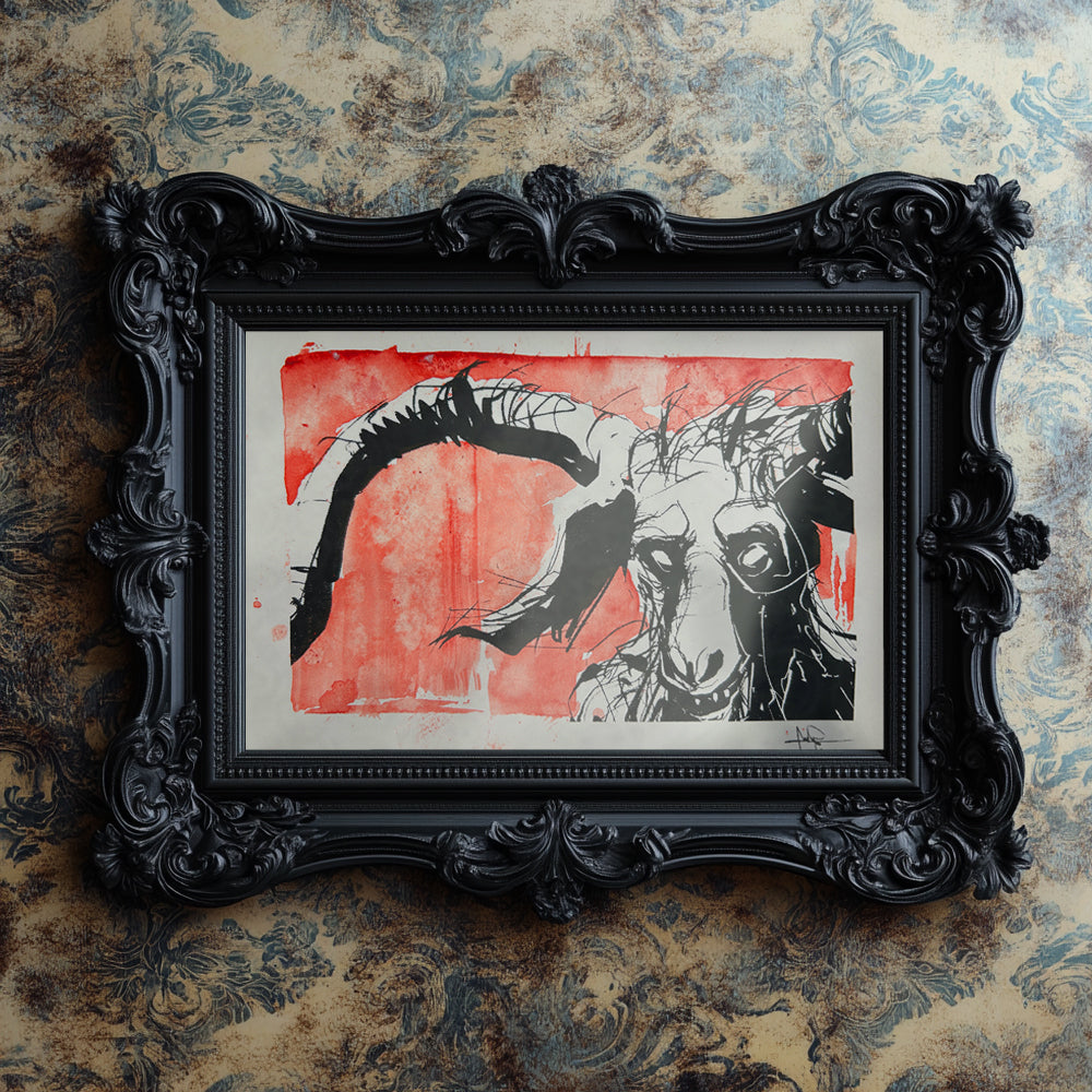 Dive into the eerie world of our "Goat Man: Embrace the Creep" drawing, where the line between human and beast blurs in a captivating display of dark artistry. It captures FabCreates' signature style, infusing every brushstroke with a haunting allure.