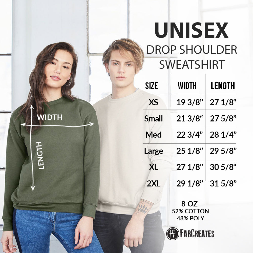 Always hand screen printed with water-based inks and crafted from a 52% cotton/48% polyester blend for a heathered vintage feel, this sweatshirt combines style with comfort effortlessly. The unisex fit and dropped shoulders add a touch of versatility to your wardrobe. This design embodies FabCreates' signature style, offering a bold statement in a range of limited colors.