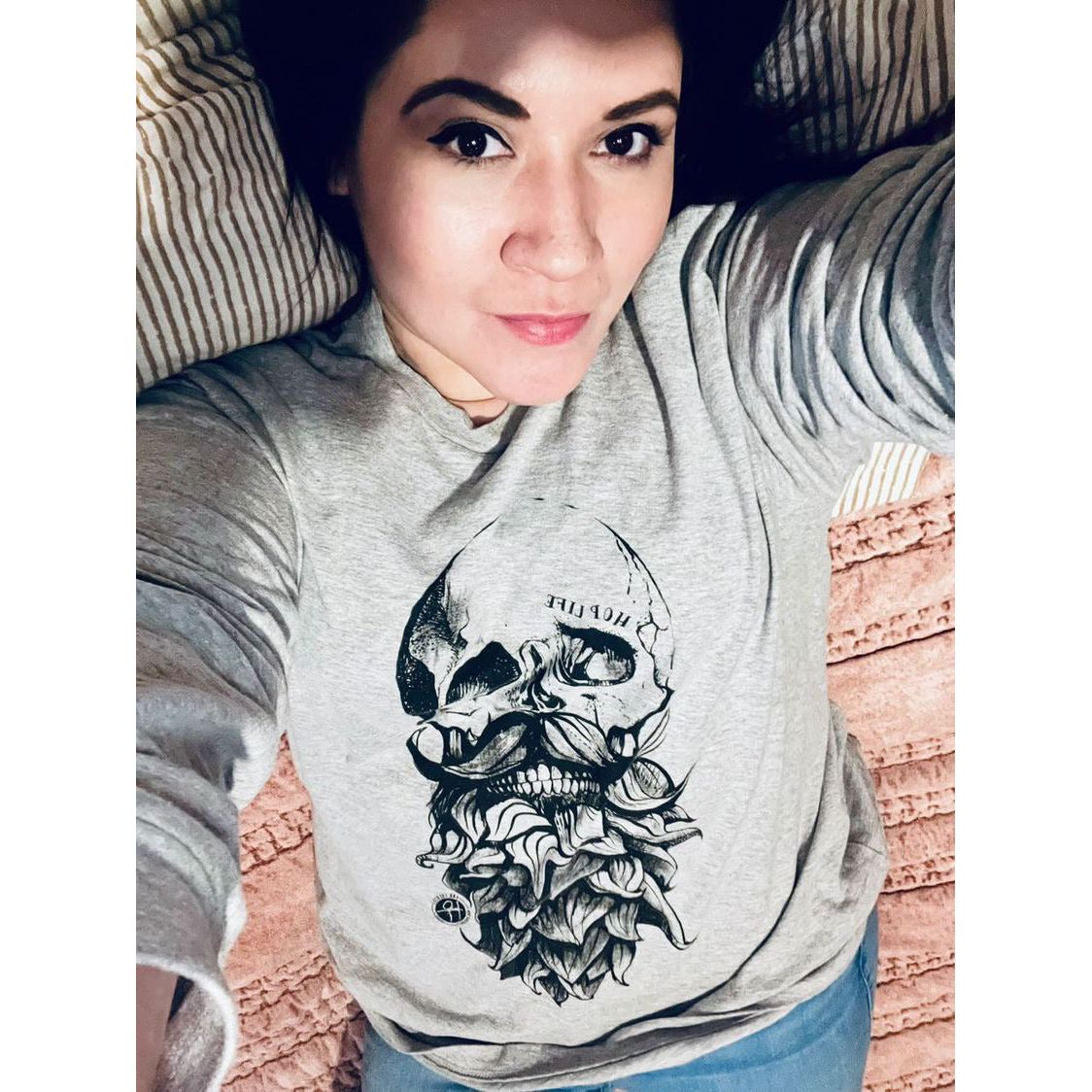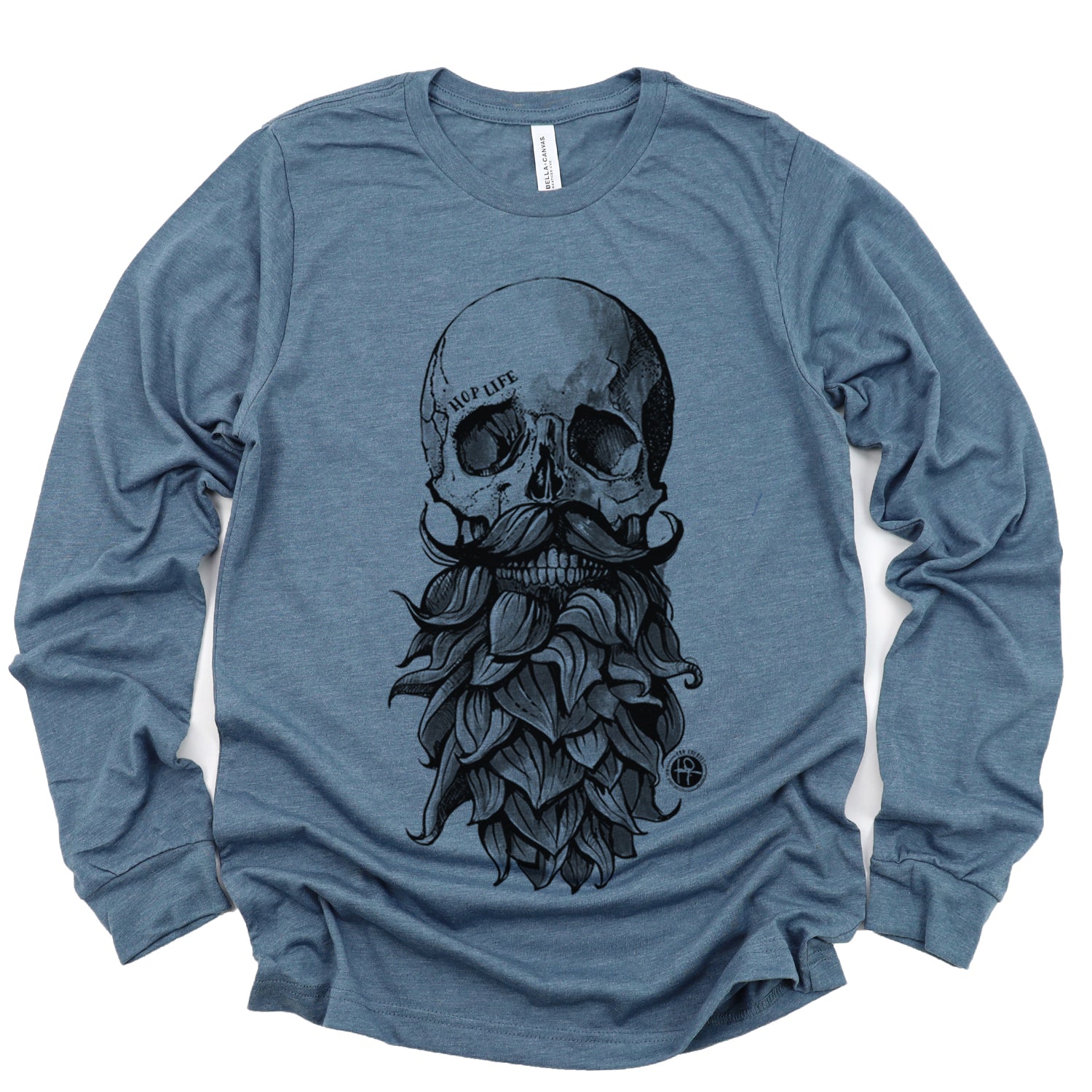 Elevate your beer-loving style with our Hop Life Skull Long Sleeve T-Shirt. This design features a tattooed skull adorned with a hops beard, celebrating the essence of craft beer culture. With intricate pen ink line work and vintage Victorian flair, it's a statement piece for those who appreciate both quality brews and unique fashion.