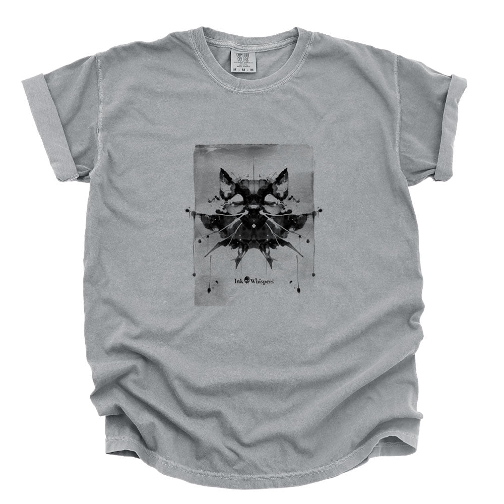 Ink Whispers Black Cat — Prowls more than shadows with a single inkblot silhouette — a black cat suspended in mystery, graceful and untamed. Its silhouette is deceptively simple, yet loaded with legend: luck or curse, independence or solitude. The design feels pulled from midnight or a superstition too persistent to dismiss, its edges bleeding into the fabric like something whispered in the dark.
