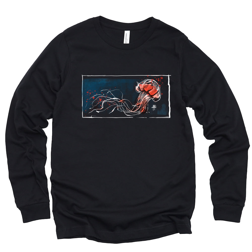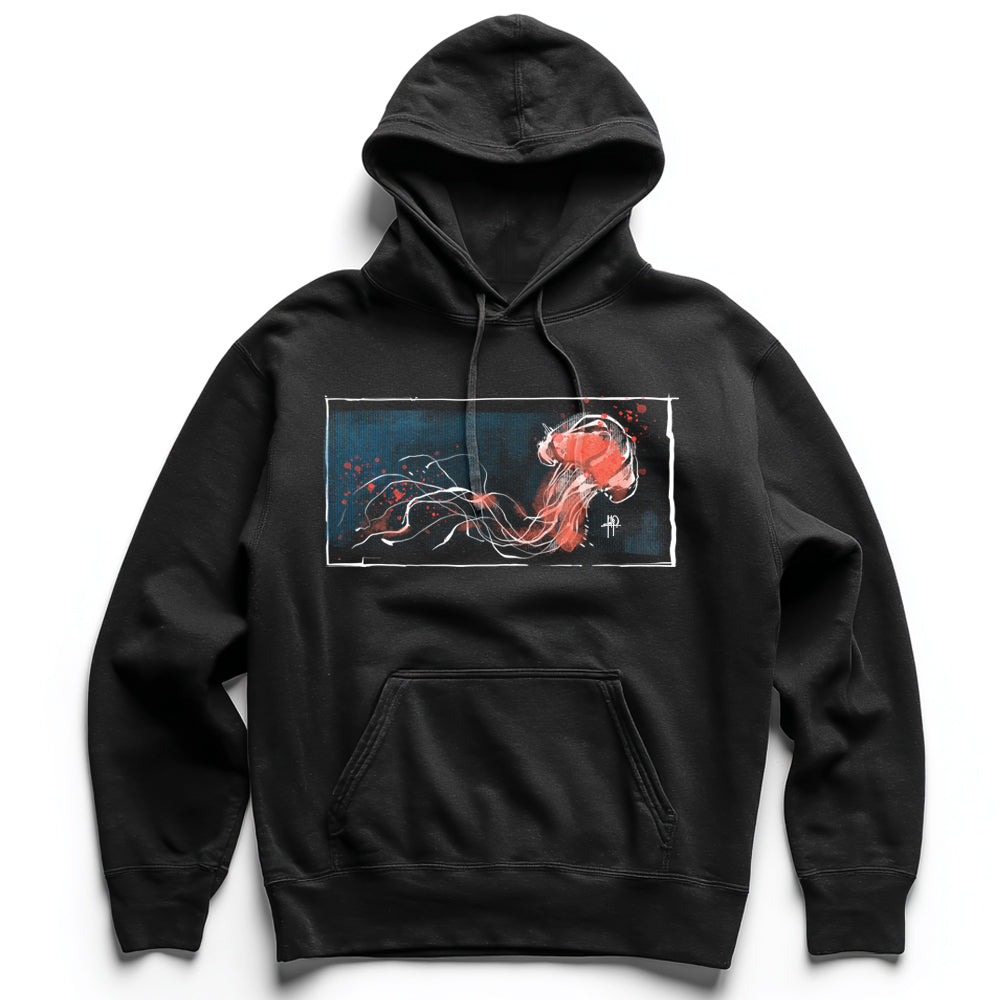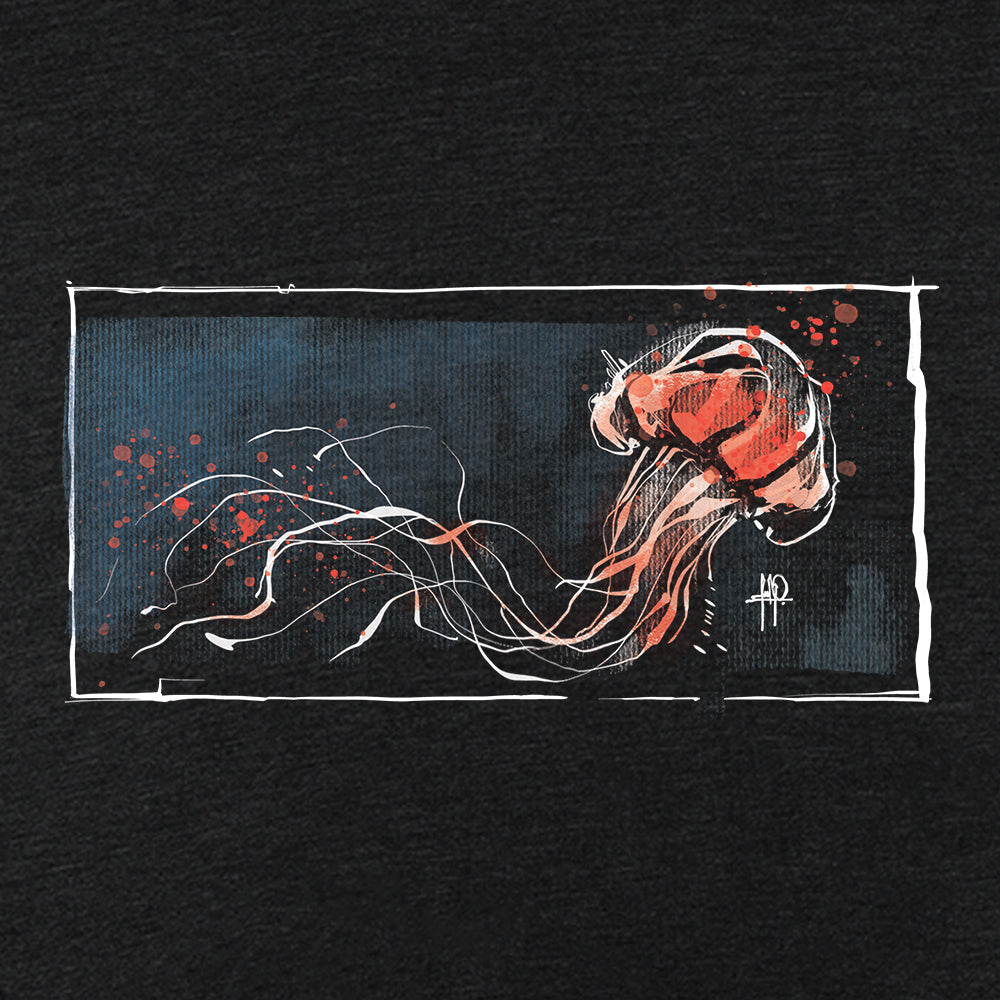 This jellyfish drifts through ink and darkness like a living pulse — delicate lines tangled with quiet power. It feels weightless but dangerous, beautiful but untouchable. A reminder that the softest things can still sting.