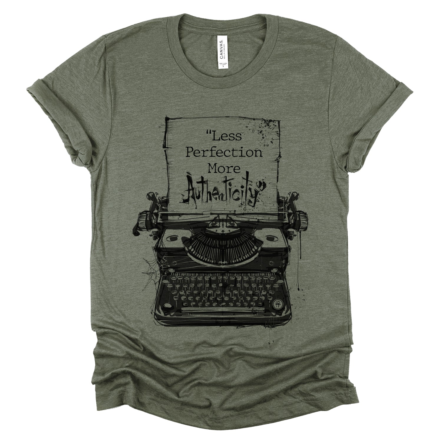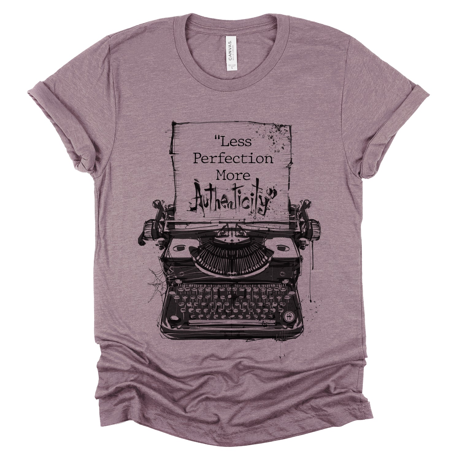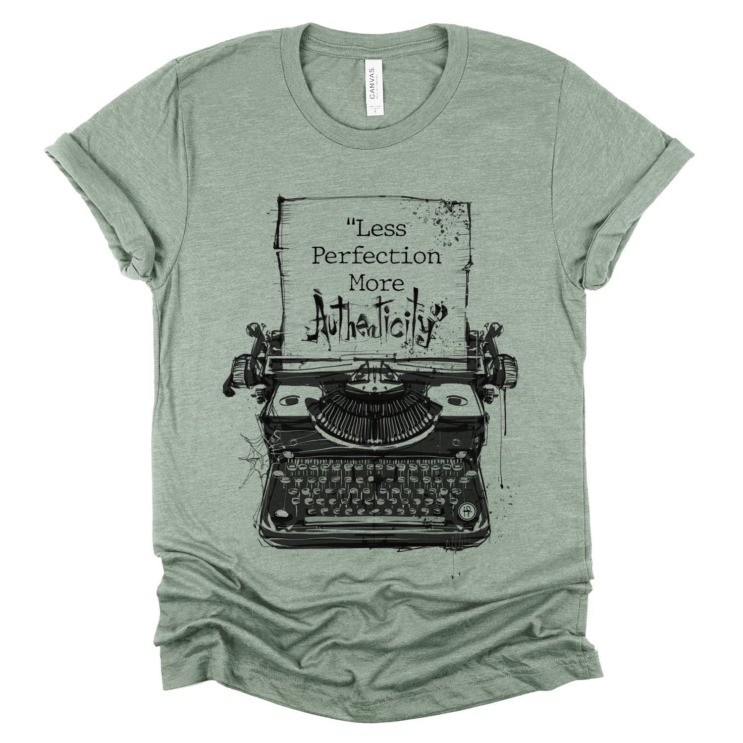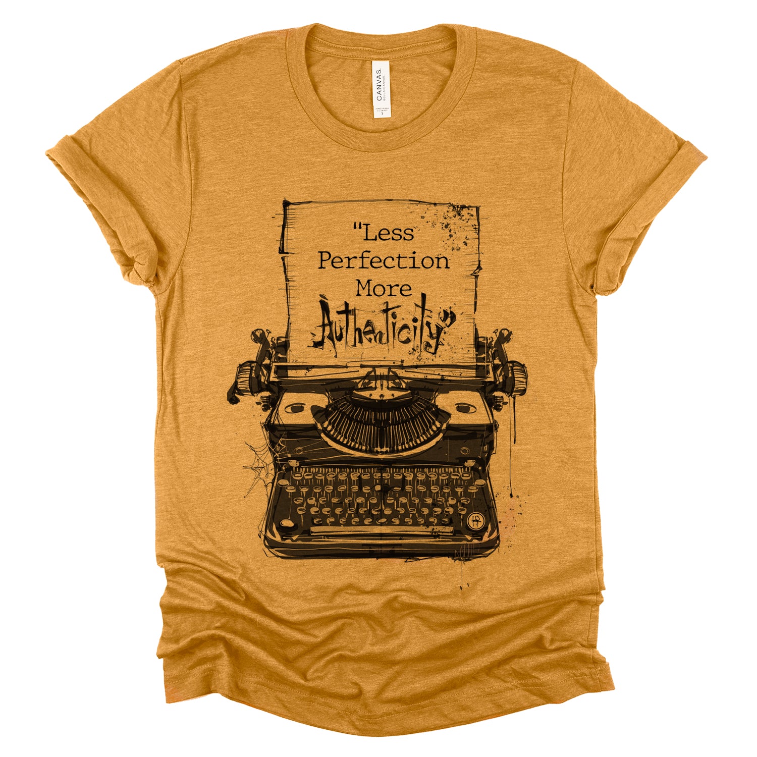 Less Perfection More Authenticity: Typewritten Wisdom T-shirt