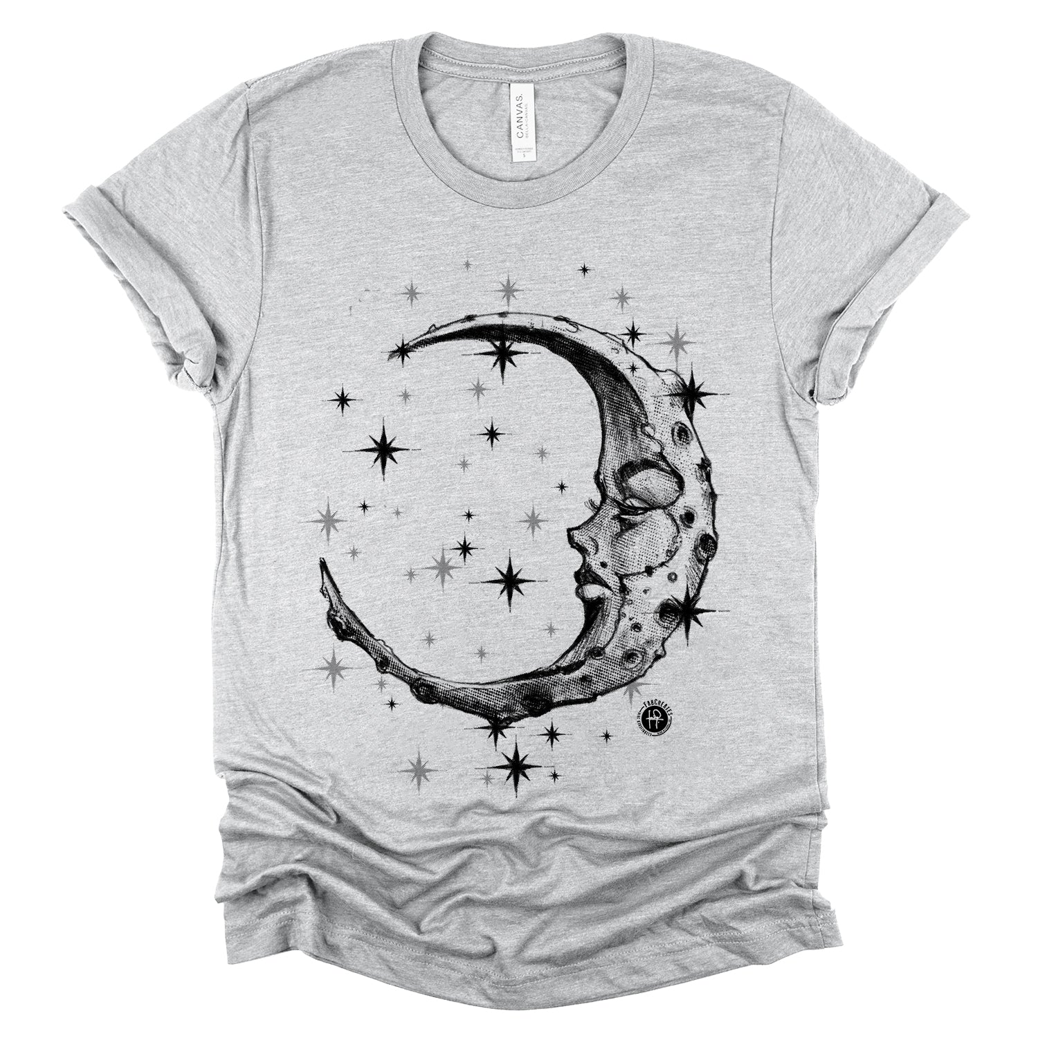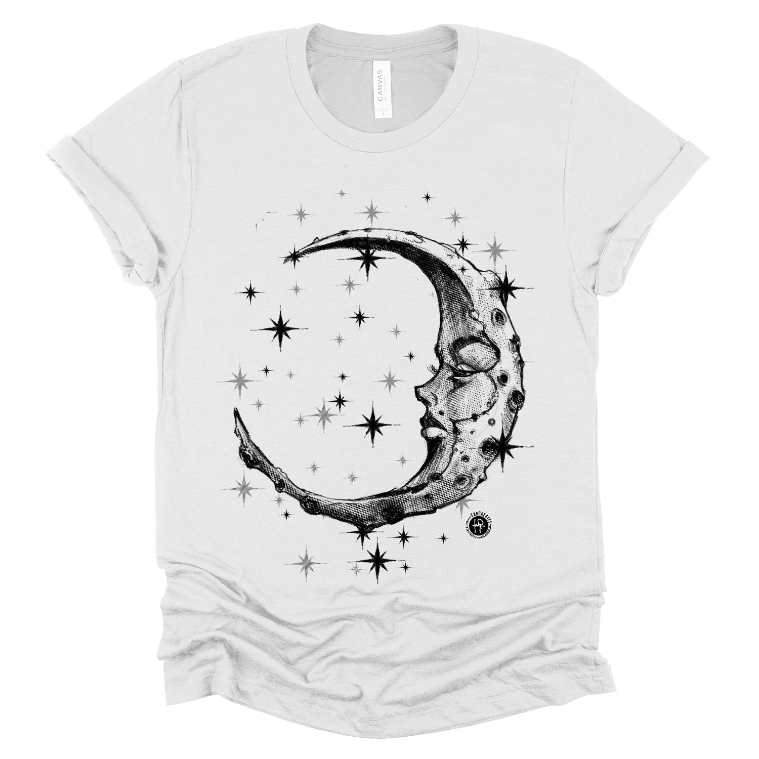 Step into the serene world of our "Lonely Moon: A Glimpse of Solitude"print, where a vintage illustration invites contemplation. This design captures the essence of solitude with a lone moon shining brightly against the backdrop of a starry sky. Its vintage aesthetic evokes a sense of calm and introspection, encouraging you to embrace moments of quiet reflection. Ink and light charcoal shading.