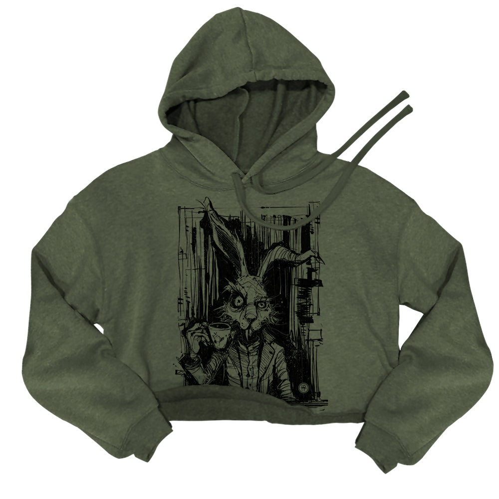 March Hare Tea Time: A Caffeinated Delight Women's Crop Hoodie