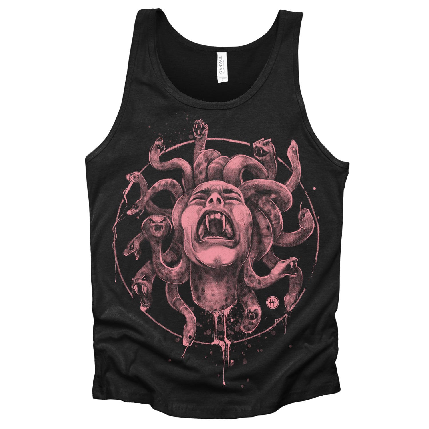 Our "Medusa's Pain: Scream Captured" print showcases the agony of the Gorgon in a chilling design. With blood dripping and her piercing scream frozen in time, this piece is a testament to the horror of Medusa's curse. Rendered in a soft pencil-charcoal style with splashes of splatters for dramatic effect, Fab focused on capturing her pain and agony, ensuring the technique never overshadowed the raw emotion.