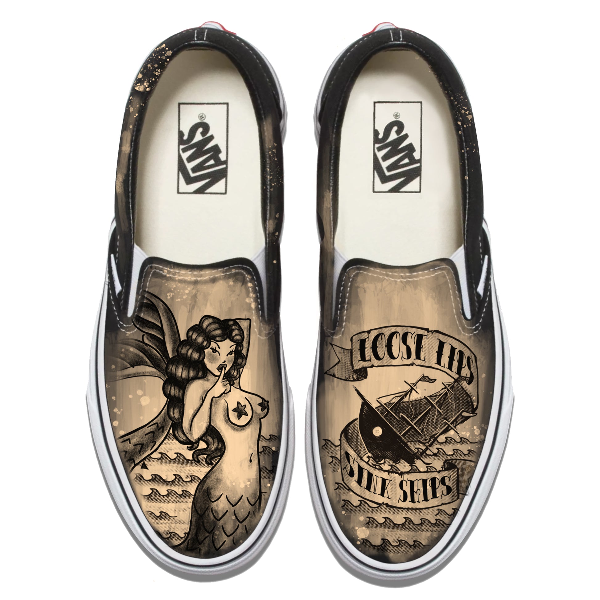 “Art you can walk in. Each pair is screen-printed and made to order. Not mass-produced—please allow 10–14 business days for them to leave our studio. Believe us, it’s worth the wait!”