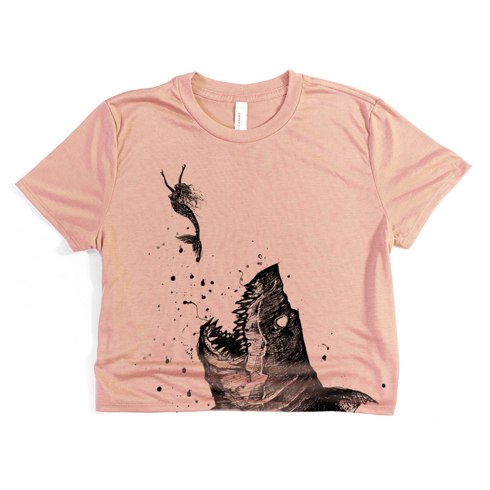 Mermaid & the Shark: Friends and Foes of the Sea Crop Tee