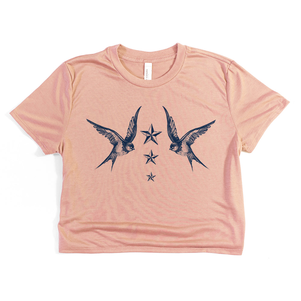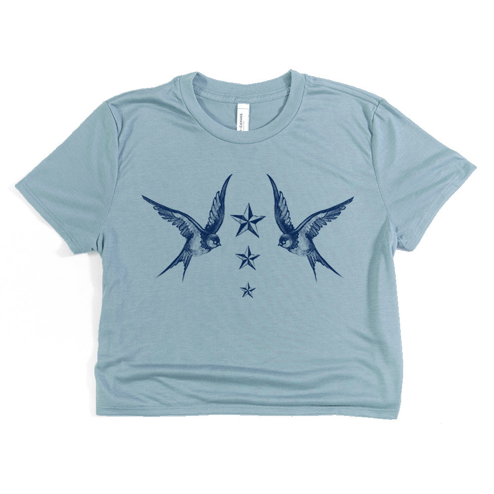 Navy Swallow Birds: A Tribute to Vintage Naval Tattoos Crop Tee