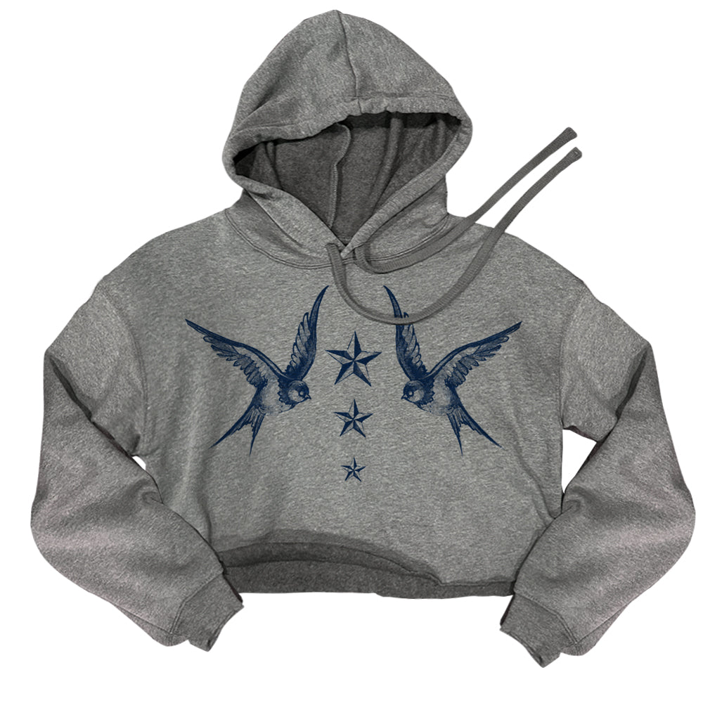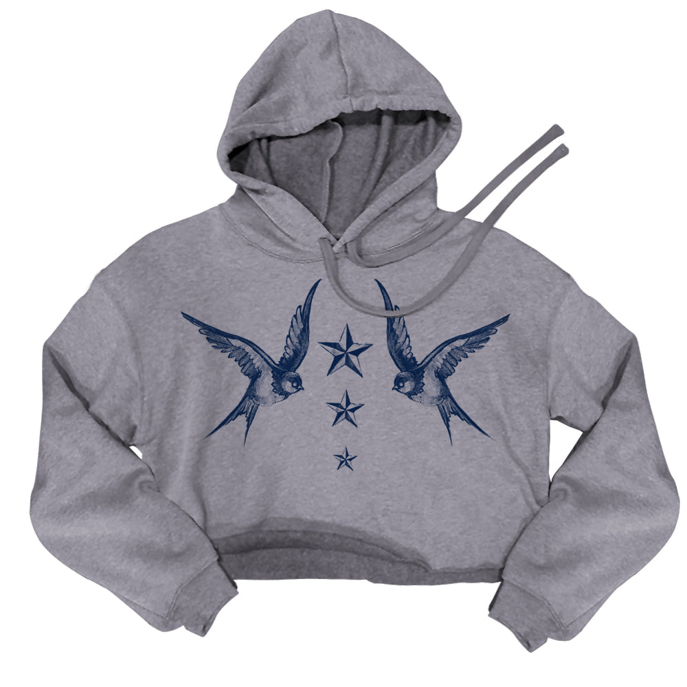 Navy Swallow Birds: A Tribute to Vintage Naval Tattoos Women's Crop Hoodie