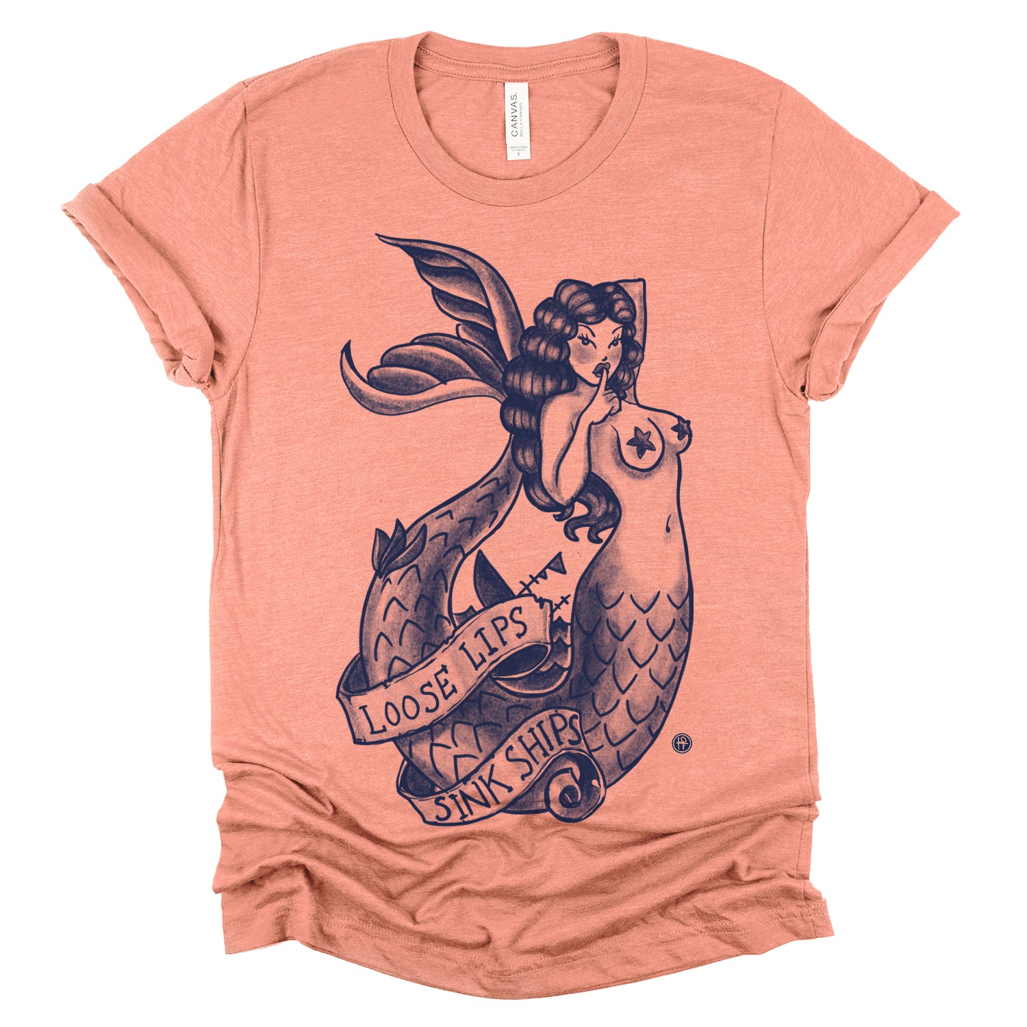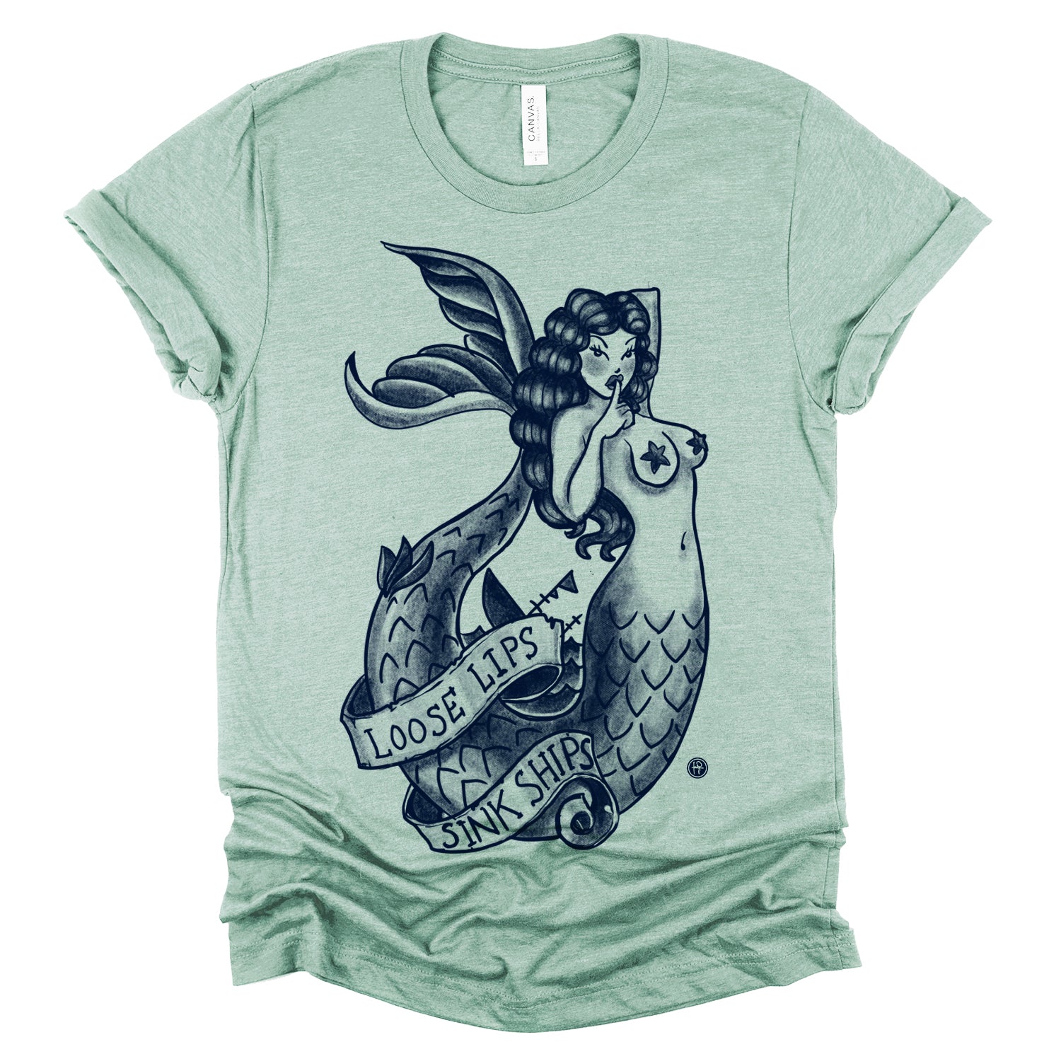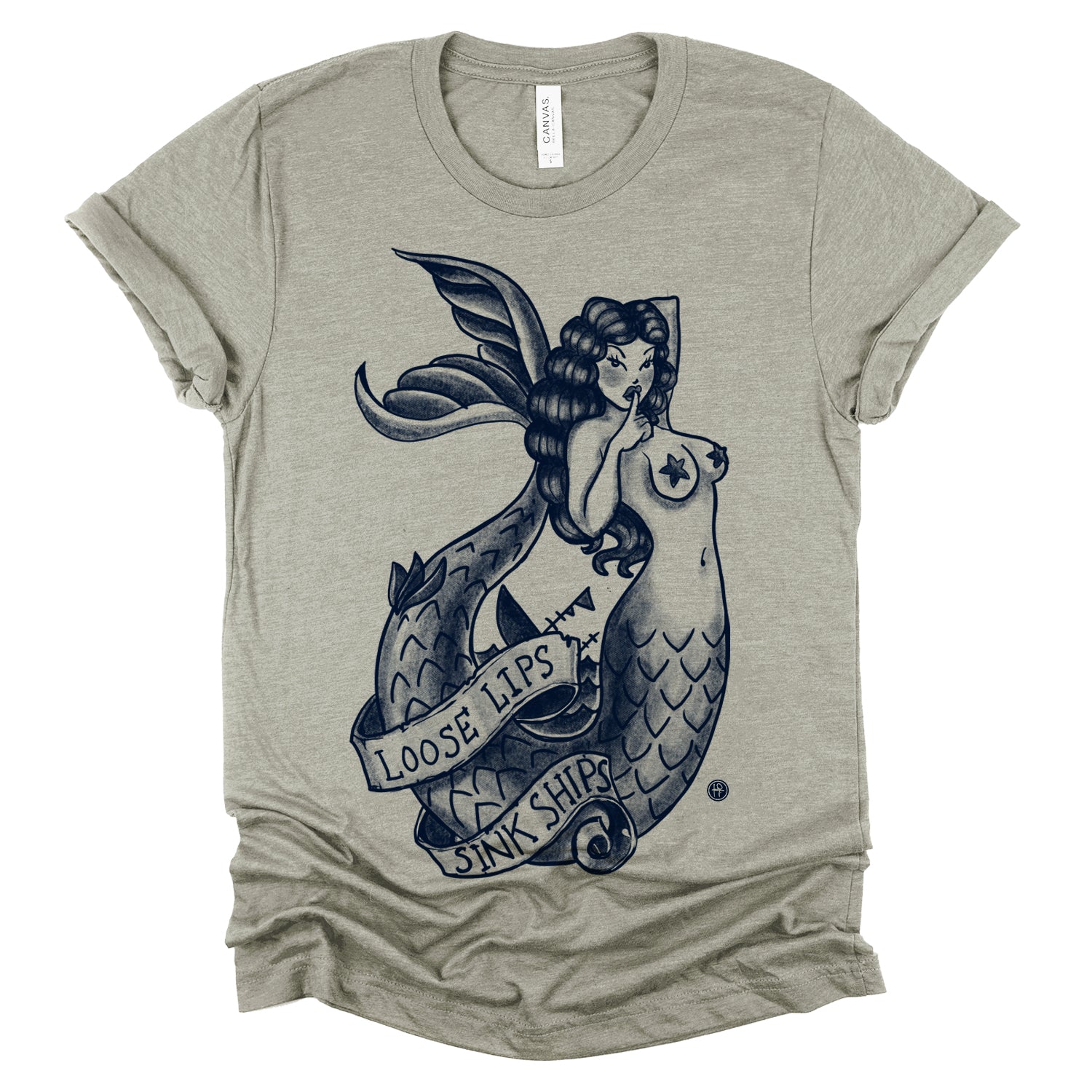 Navy Mermaid: Loose Lips Sink Ships T-shirt