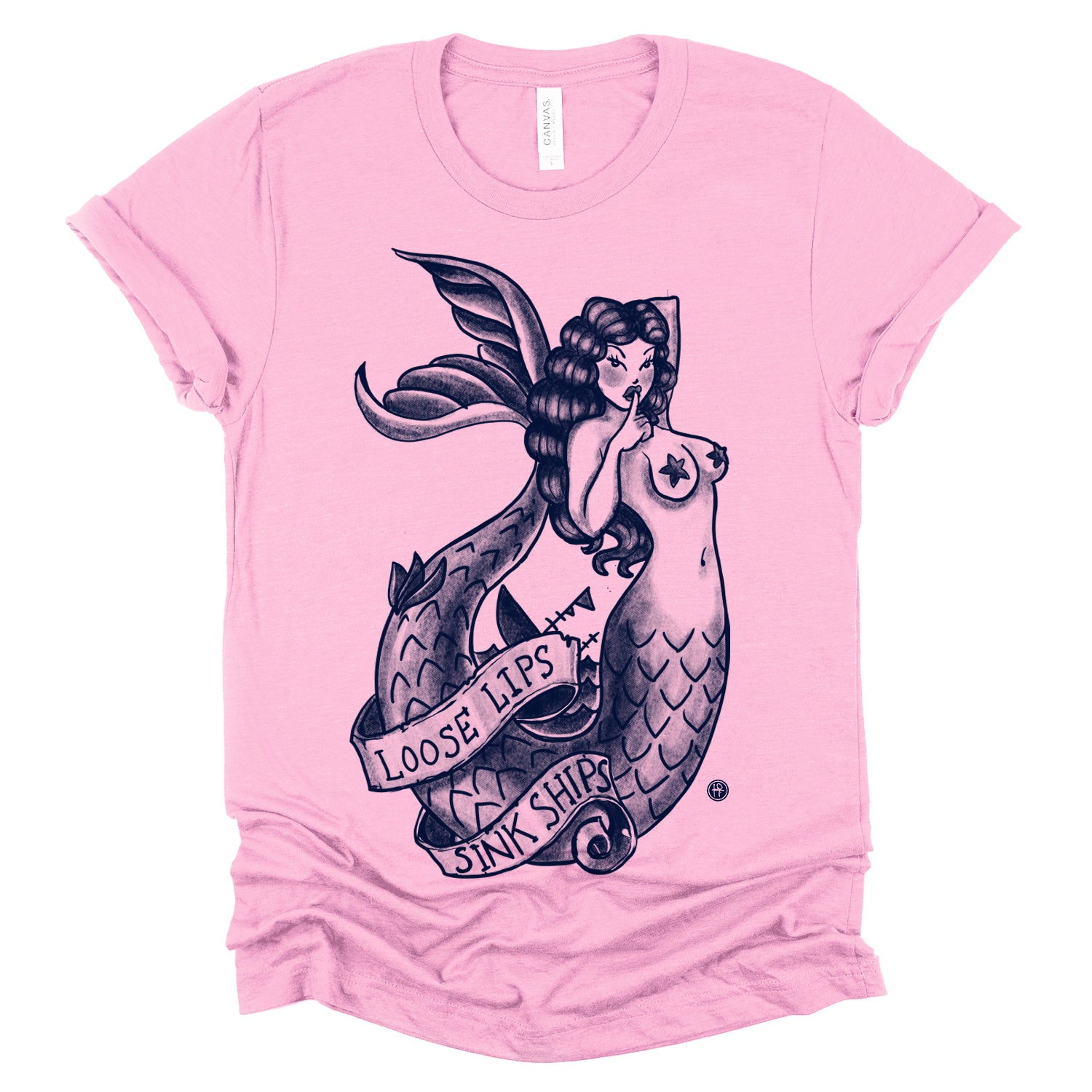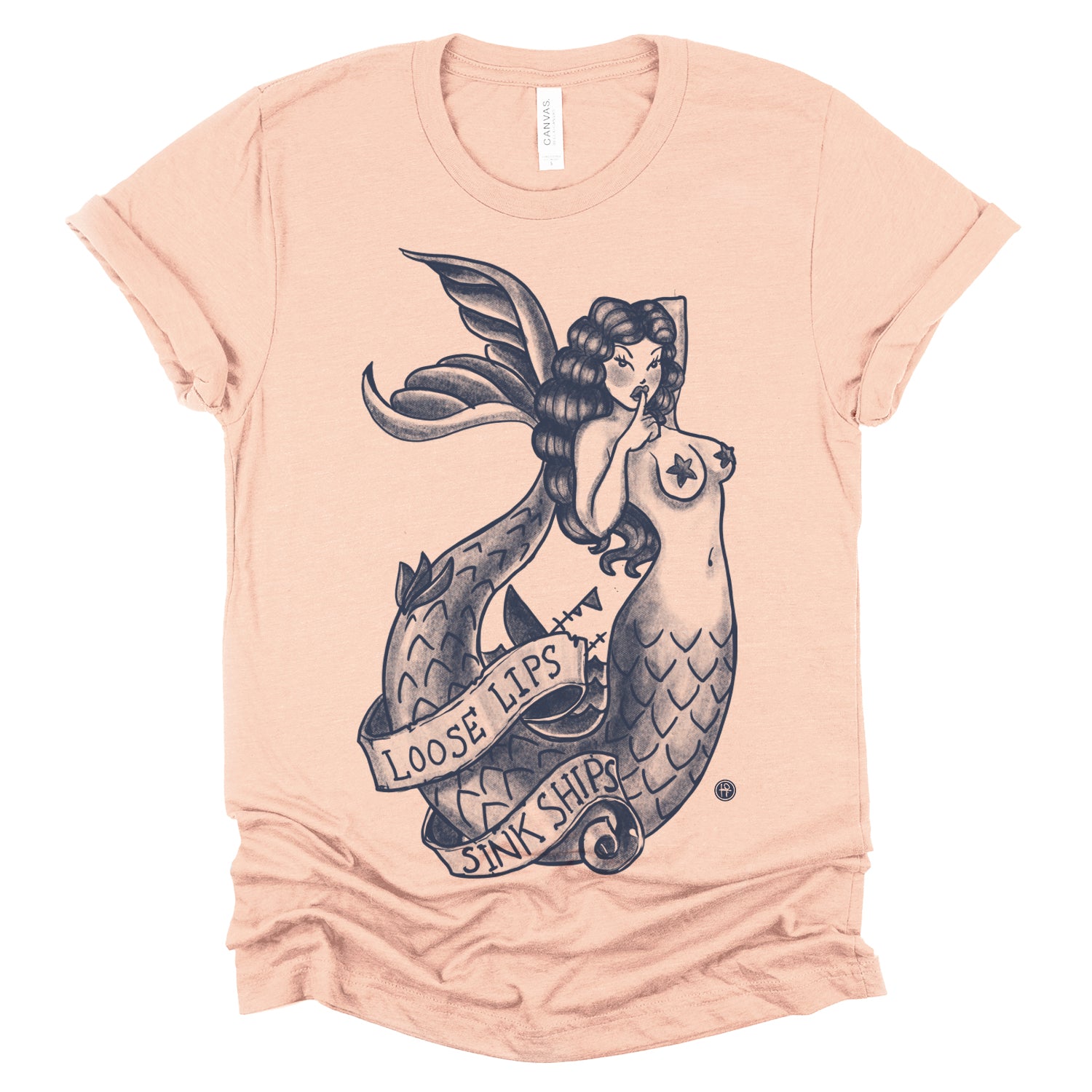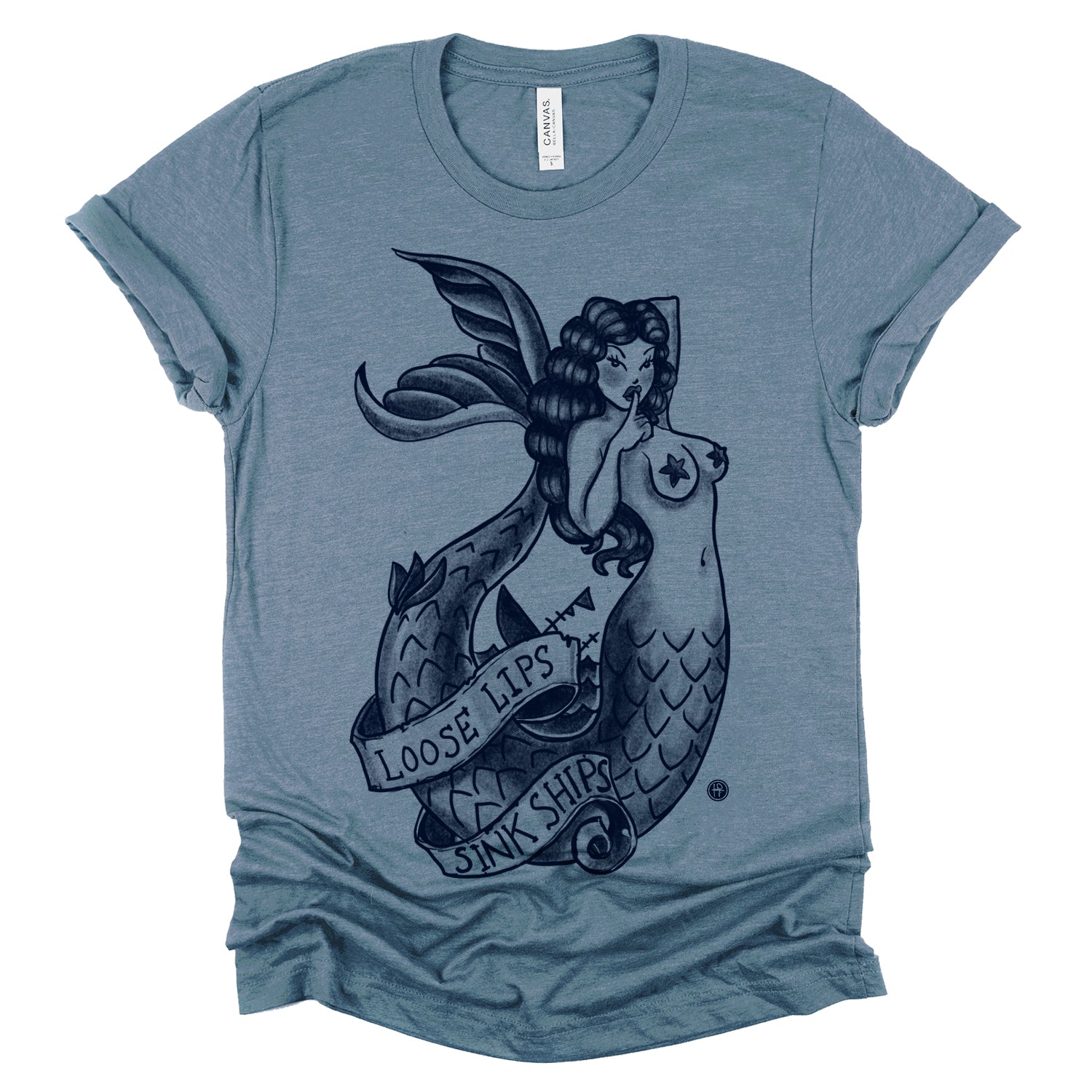 Navy Mermaid: Loose Lips Sink Ships T-shirt