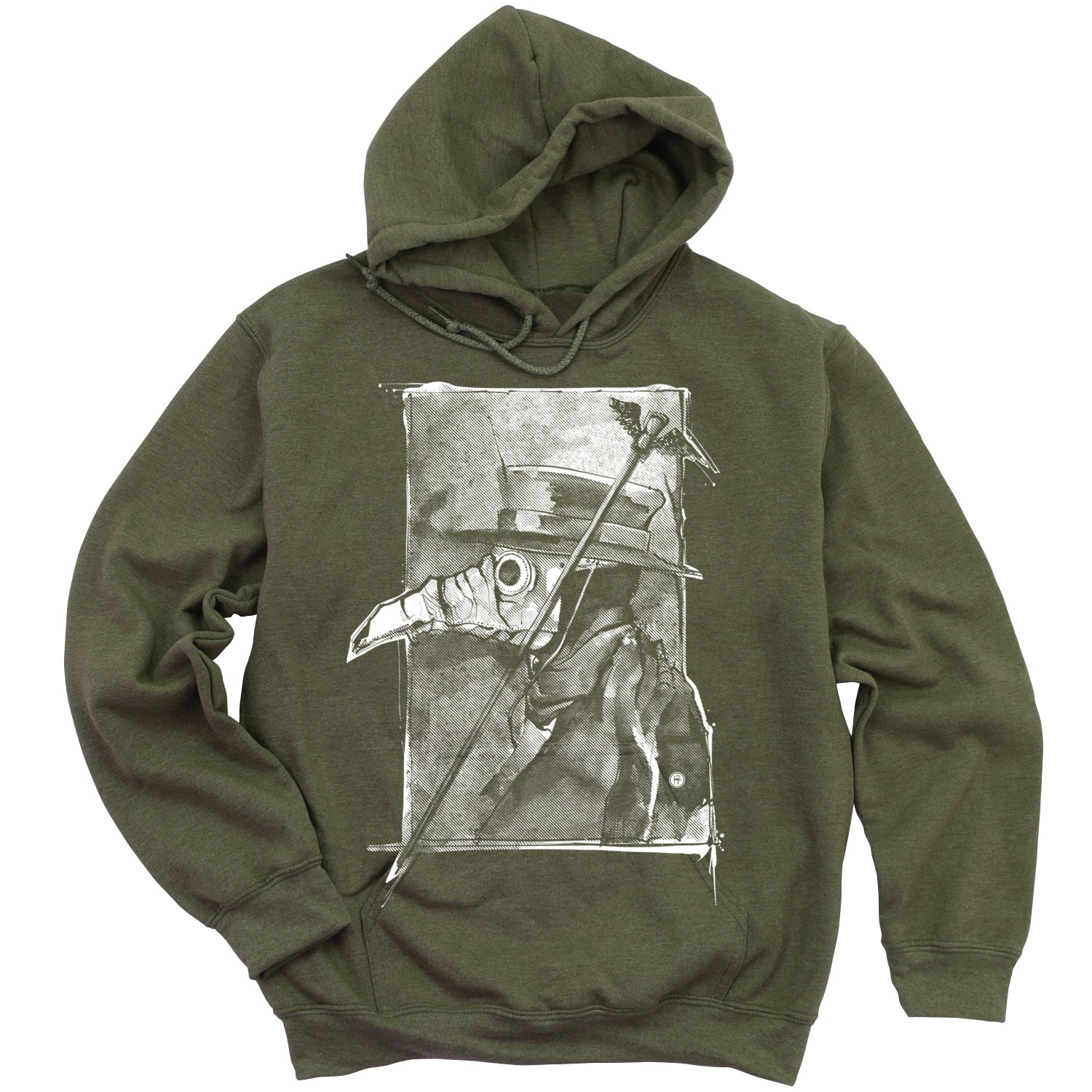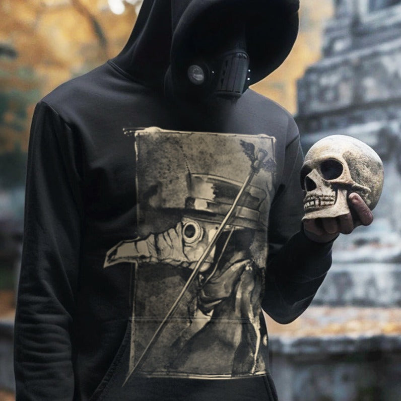 Step into the mysterious world of the "Plague Doctor: Beaked Healer" print. This haunting design pays homage to the enigmatic healers of the past, featuring the iconic beaked mask and flowing robes. The piece exudes a lifeless, almost non-human aura. Fab purposely incorporated noticeable diagonal lines in the half tones, creating an etched, dark ages-like artwork that evokes the eerie atmosphere of medieval times.