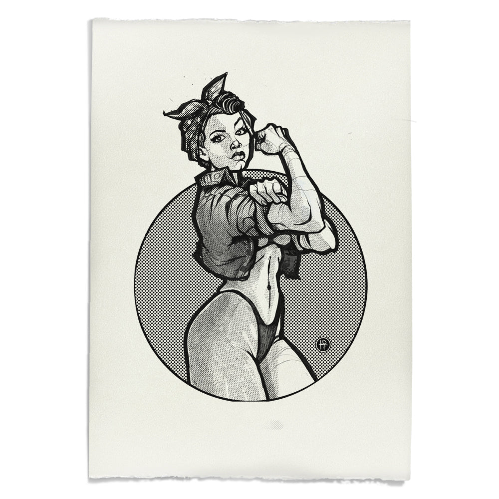 Challenge conventions with our "Rosie the Riveter: A Twist of Humor" print, offering an ironic take on the iconic symbol of feminism. This design features Rosie confidently posing in her signature style, but with a twist—she's wearing a thong. Embracing FabCreates' twisted humor, this shirt adds a playful edge to a classic image.