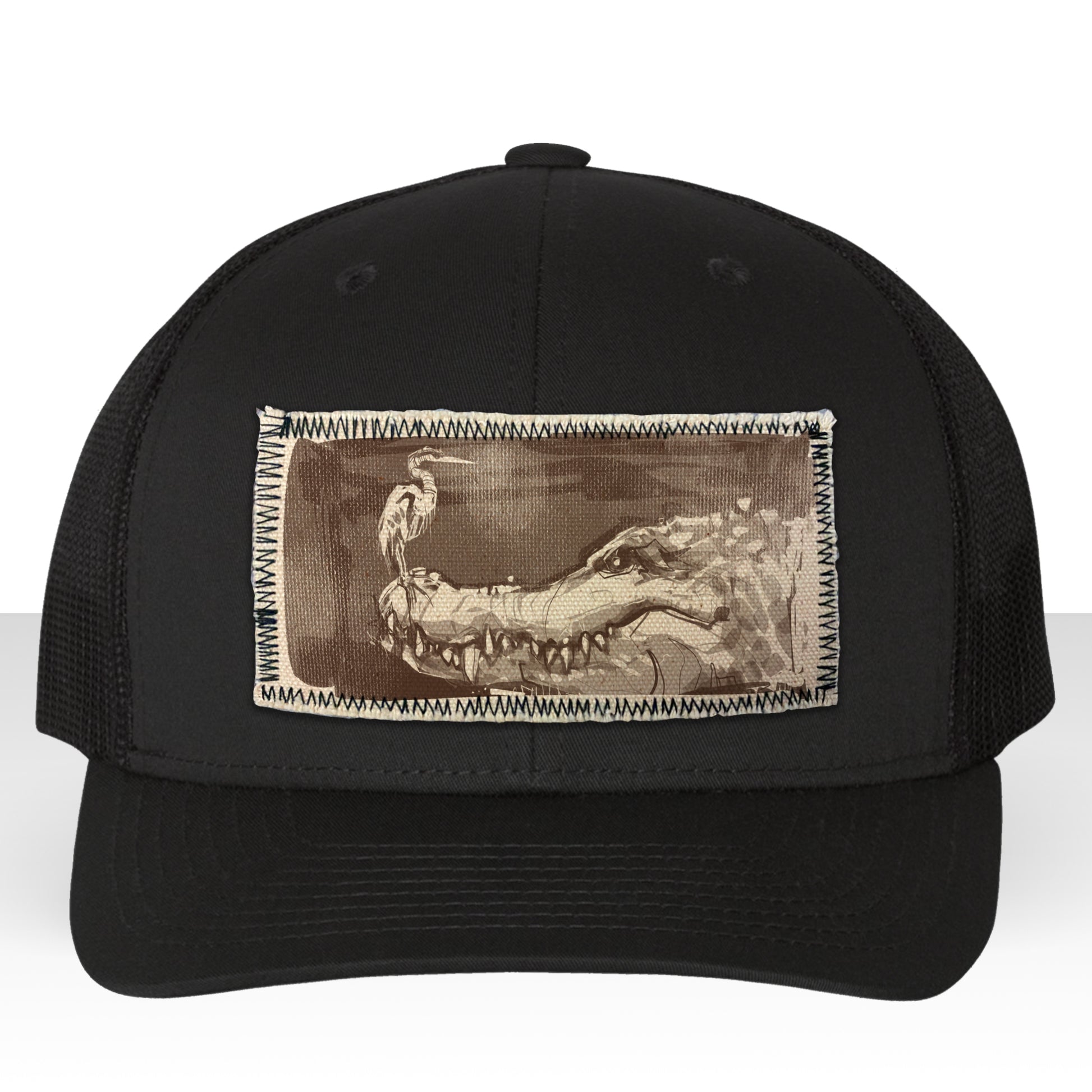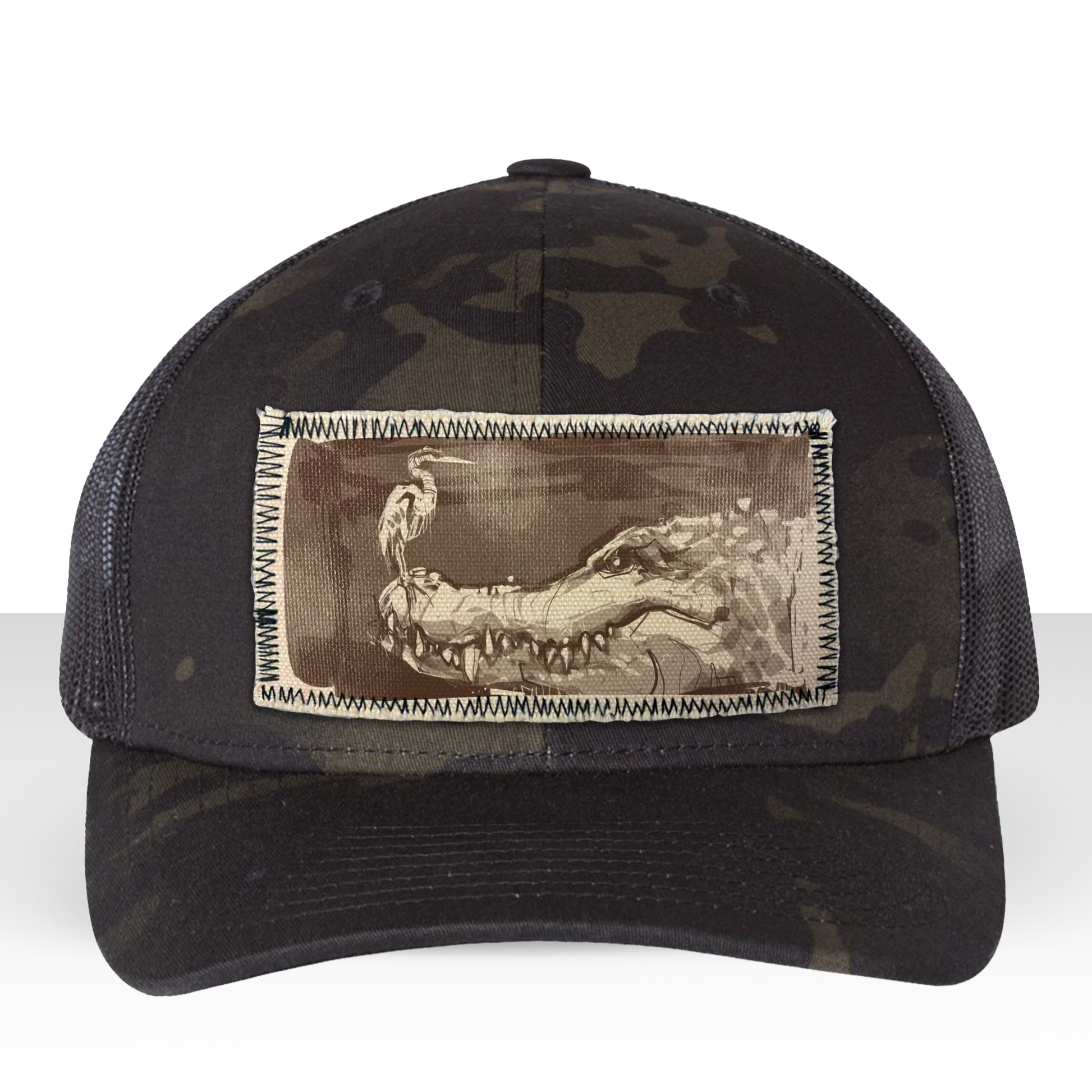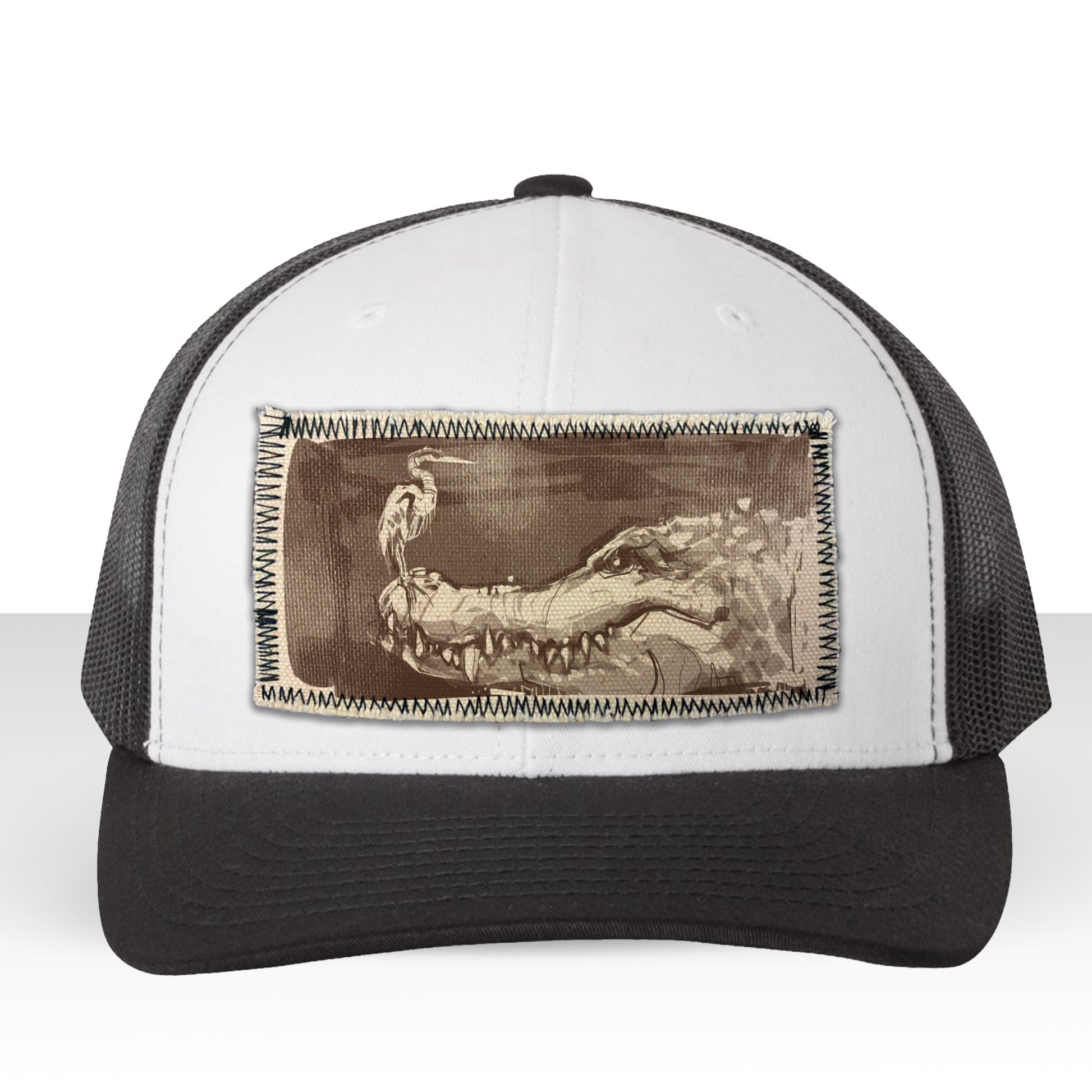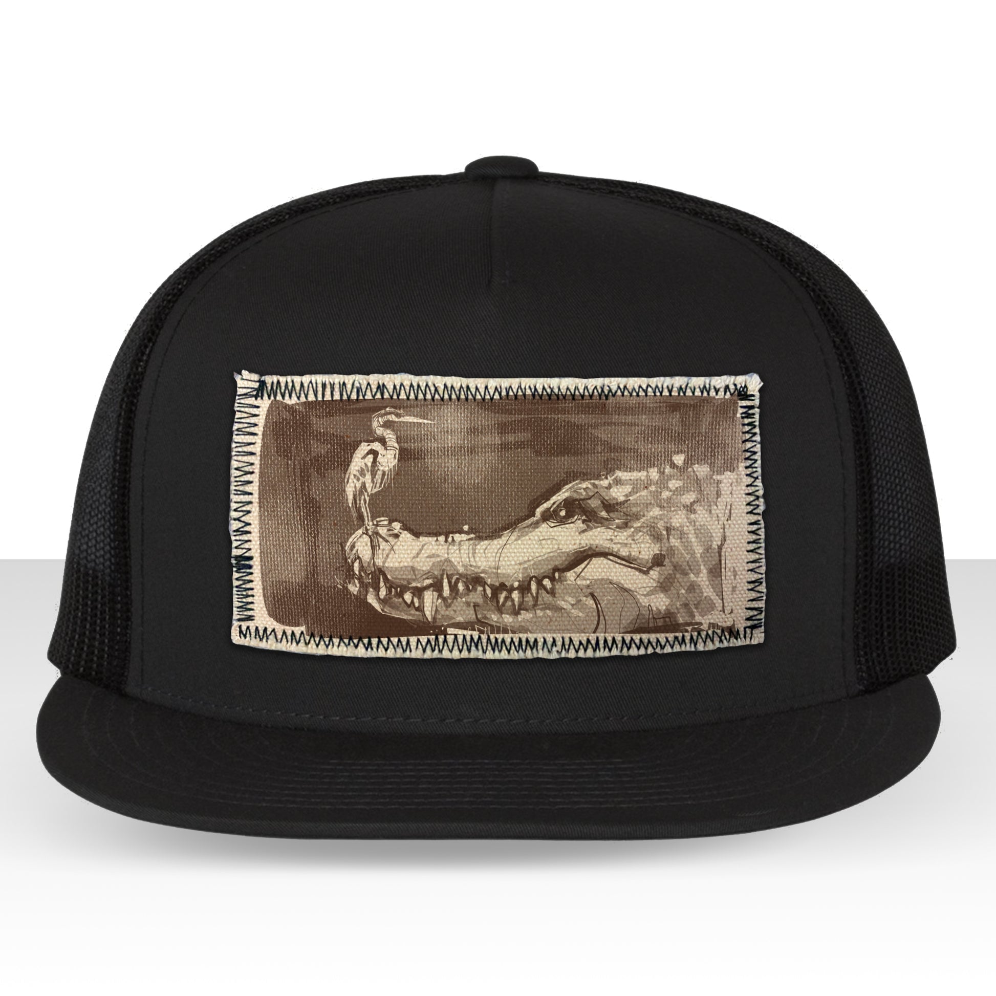 We meticulously hand-cut and stitch each patch before screen printing with water-based inks. For our hats, we use YP Classics - Five-Panel Classic Trucker for flat bills with a high profile, and YP Classics - Six-Panel Trucker Cap for curved bills with a mid profile. Both styles feature a 65/35 polyester/cotton blend, a mesh back, and a snapback closure. These trucker hats showcase FabCreates' signature gritty, imperfect style.