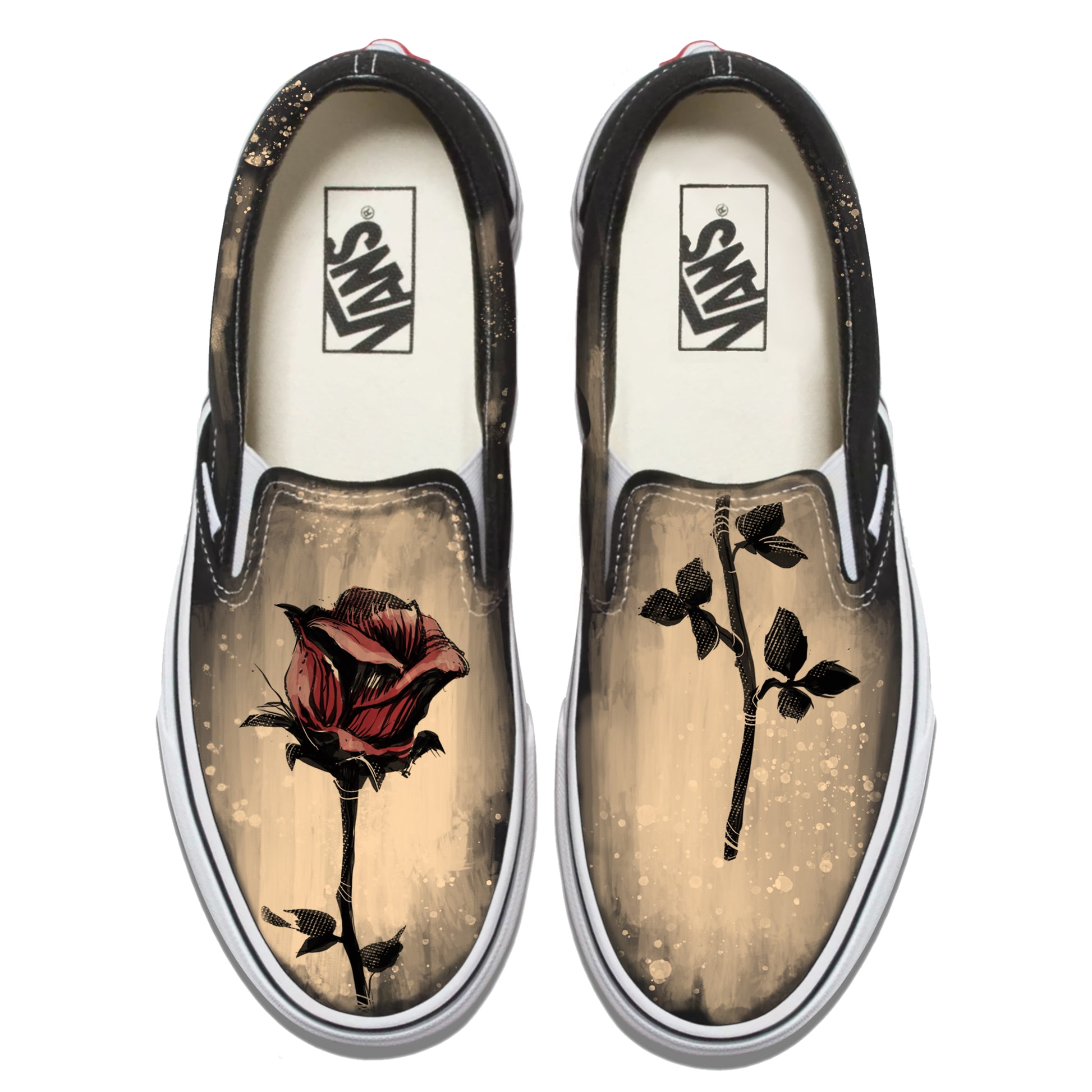 Single Rose Vans Slip ons