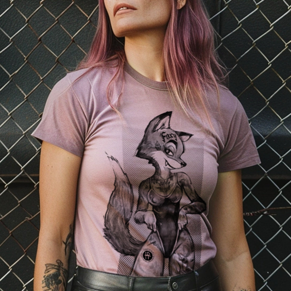 Step into a world of elegance and edge with our "Tattooed Foxy T-Shirt: Victorian Fox Elegance" print, featuring a captivating tattooed figure adorned with a fox head in a Victorian-inspired style. This design blends the allure of intricate tattoos with the timeless charm of Victorian fashion, creating a striking and unforgettable look. Fab rendered this piece using only pencil-like brushes for an antique appearance, complemented by a halftone pattern background to infuse a modern feel.