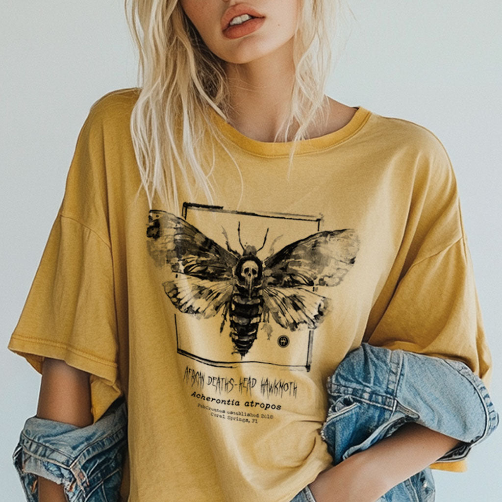 Explore the mystique of our "Taxidermy: African Death's Head Hawkmoth" print, part of our series capturing the eerie allure of vintage entomology. This design evokes a sense of mystery and nostalgia, showcasing the fascinating insect in all its haunting beauty. Fab rendered this piece with soft watercolor-like shading and incomplete ink lines for the linework, complemented by vintage typography to evoke the look of a classic insect collection.
