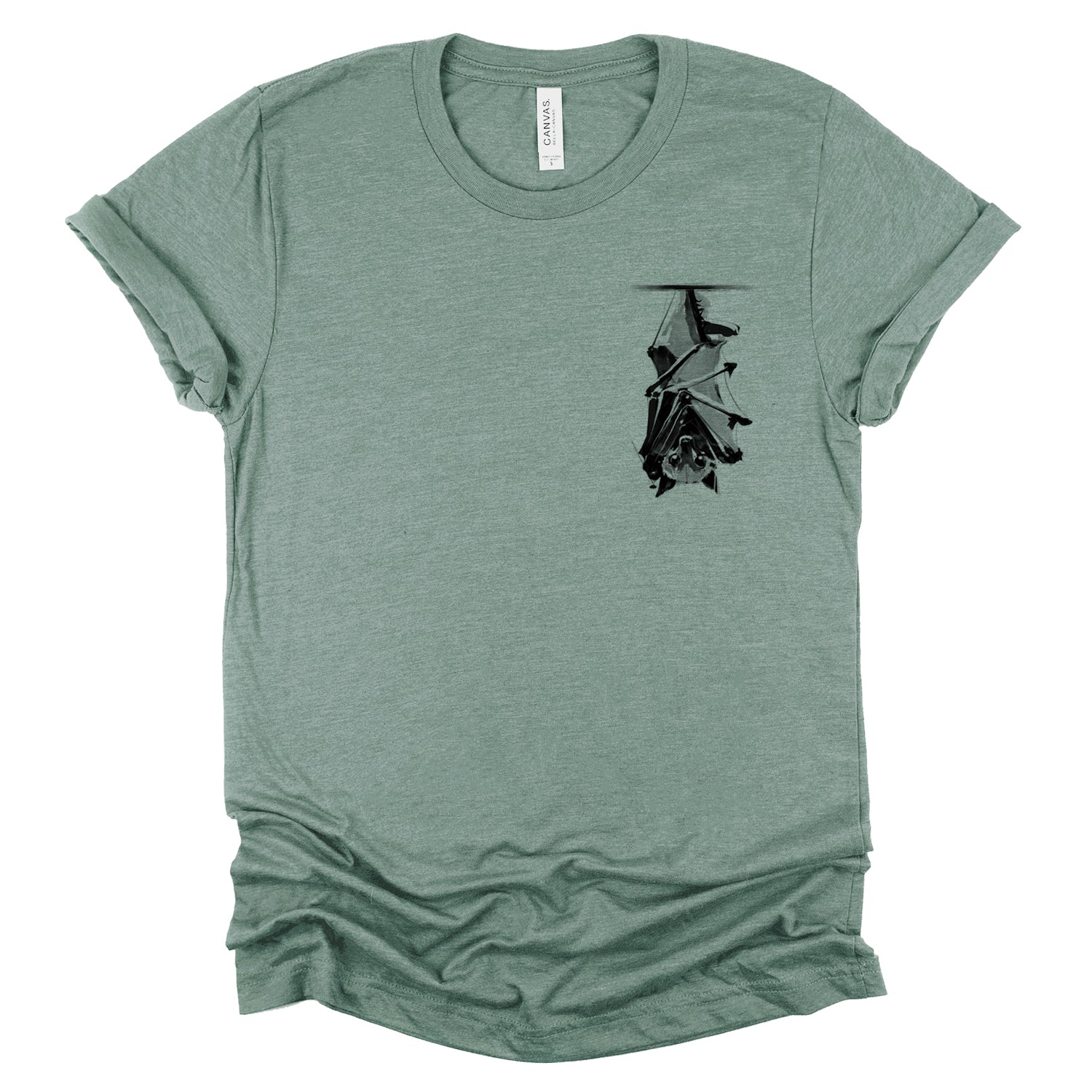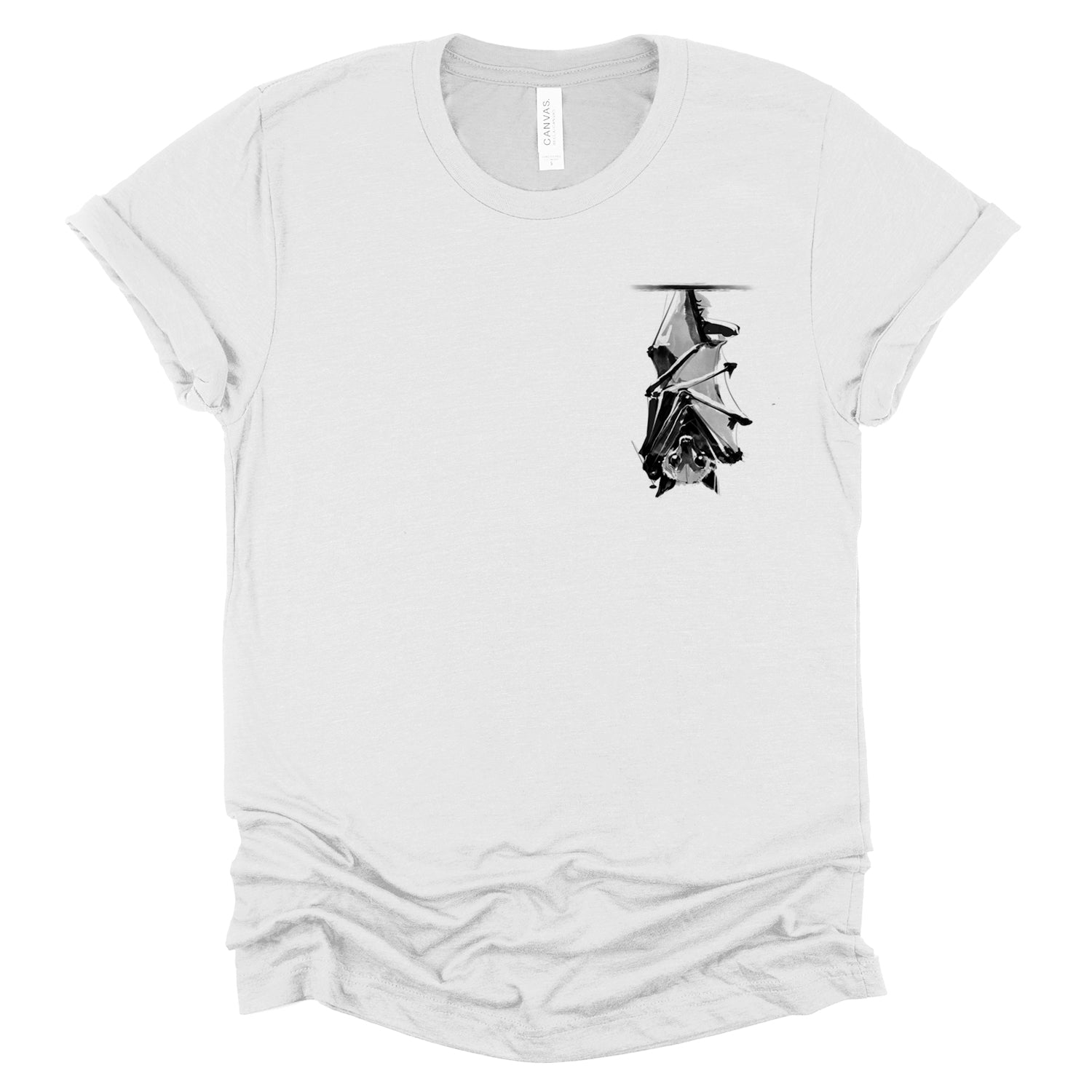 Embrace the tranquility of the night with our "Upside Down Bat: Subtle Serenity" pocket print. This design captures the essence of peacefulness with a resting bat elegantly portrayed in an upside-down pocket style. Sometimes, the smallest and simplest designs speak the loudest. Rendered with a watercolor wet ink feel, it embodies the gritty style typical of FabCreates.